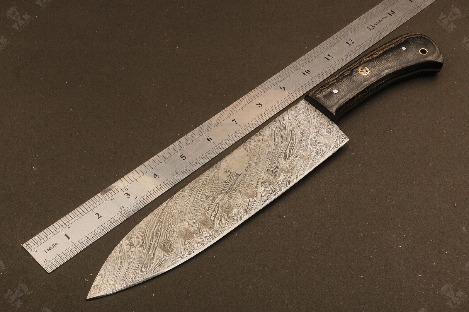 14" Custom Hand Forged Twist Damascus Steel Santoku Knife for Chef Use – Camel Bone & Wood Handle