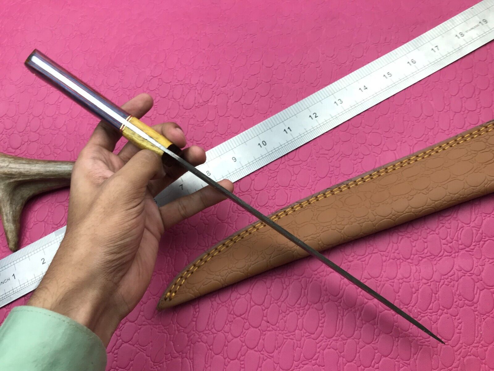 14" Handcrafted Damascus Fillet Knife Damascus Steel Knife W/Sheath