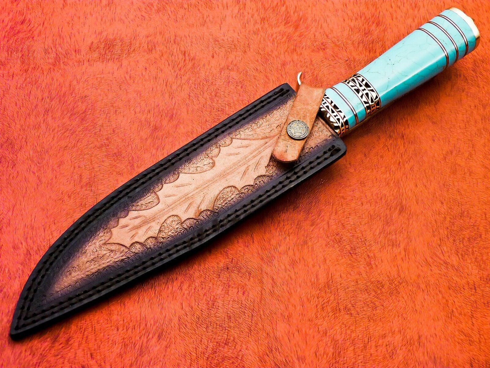 This unique blade comes with a hand-stitched leather sheath, offering protection and portability for any outdoor journey. Whether you're collecting or adventuring, this piece is more than a tool—it’s an expression of craftsmanship and purpose. It makes an exceptional gift for outdoorsmen, hunters, and knife collectors alike.