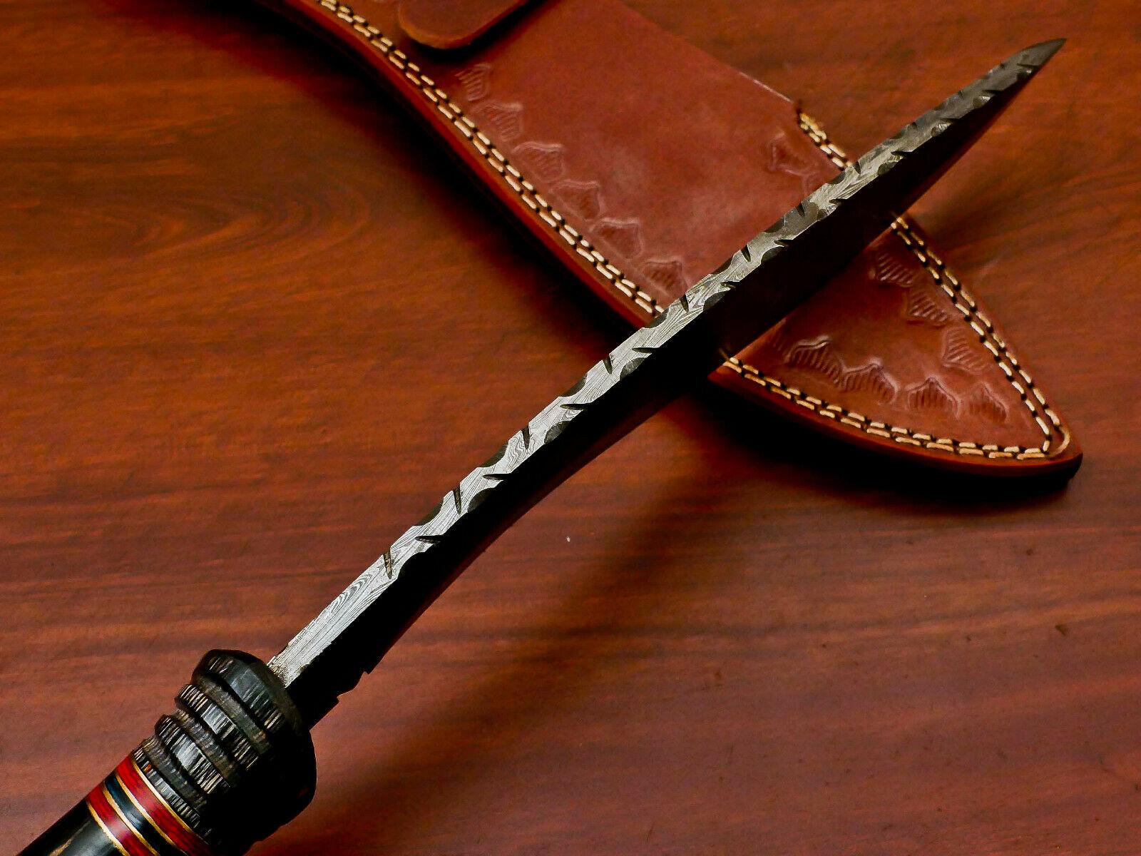 Discover the perfect combination of artistry and functionality with this 15-inch Hand Made Damascus Large Khukri Kukri Bowie Knife. Featuring a robust 9.5-inch blade forged from premium Damascus steel, this knife is a masterpiece designed to impress collectors and hunters alike.