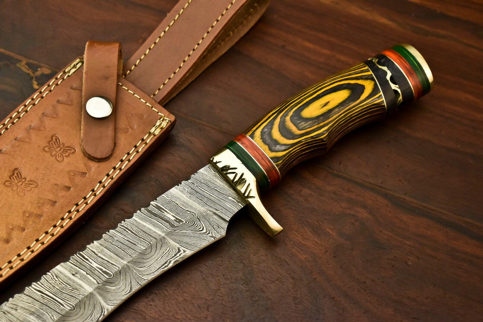 Whether you’re a seasoned hunter, collector, or outdoorsman, this hard wood Damascus Bowie knife delivers unmatched beauty and performance. A timeless piece that honors true blade-smithing traditions.