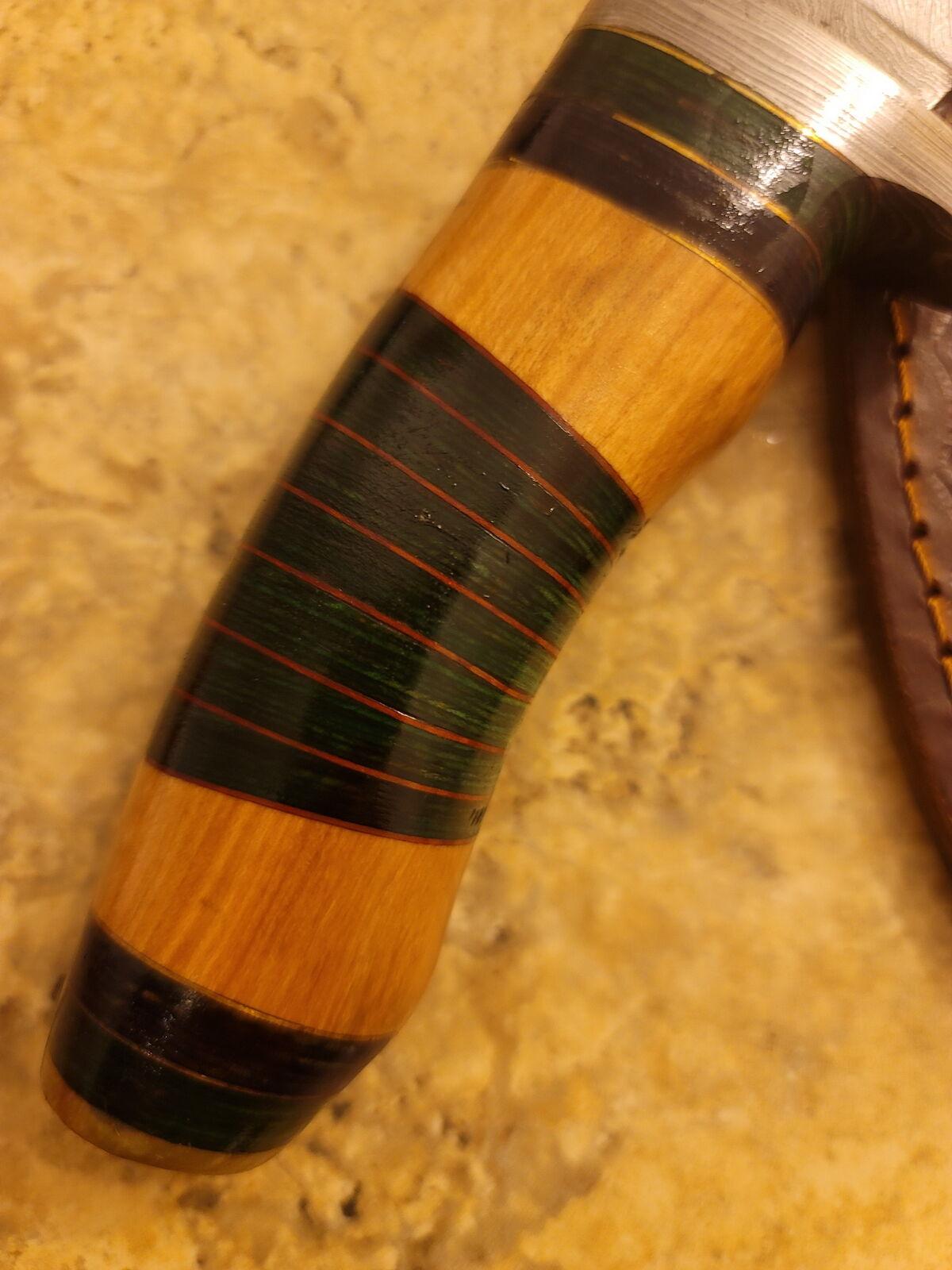 15" Handmade Damascus Hunting Bowie Knife – Olive Wood Handle