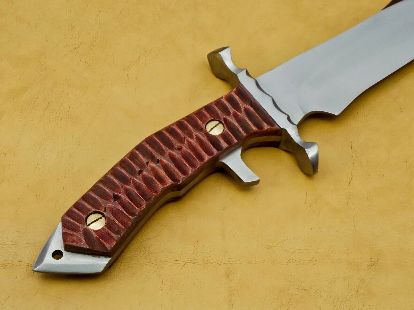 Introducing the 15" Custom Handmade Carbon Steel Hunting Knife by Heritage Forge – a rugged full-sized Bowie knife engineered for outdoor performance. This blade is hand-forged from premium high-carbon steel, offering exceptional wear resistance and edge retention with a hardness of 56–58 HRC. The thick 5.0 mm blade ensures strength for heavy-duty tasks, while its fine grind makes it perfect for skinning, chopping, and precision cuts.