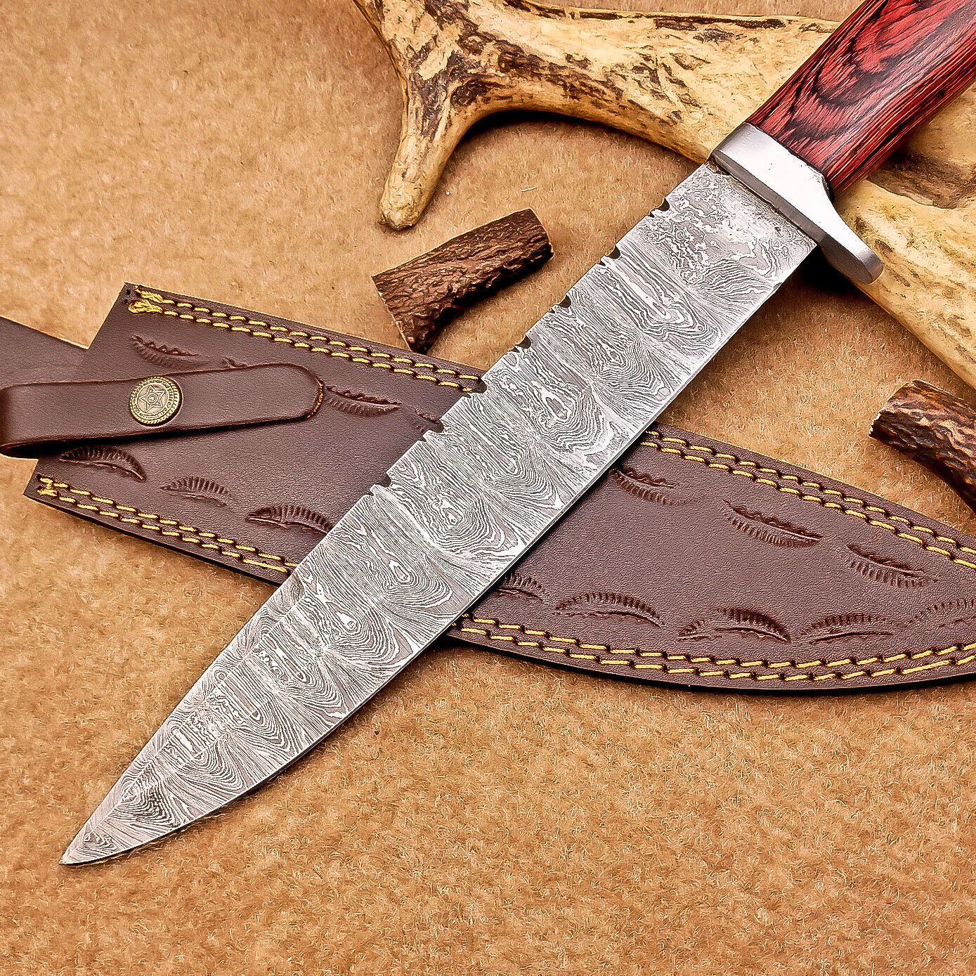 15 Inch Handmade Damascus Steel Bowie Knife with Hardwood Handle