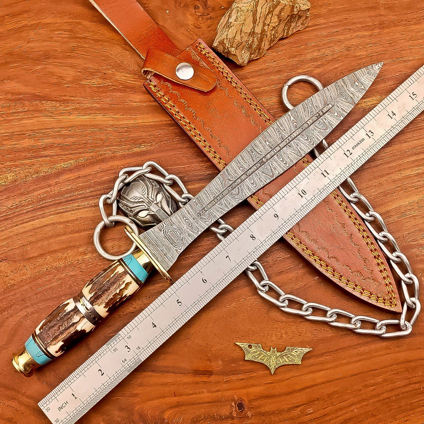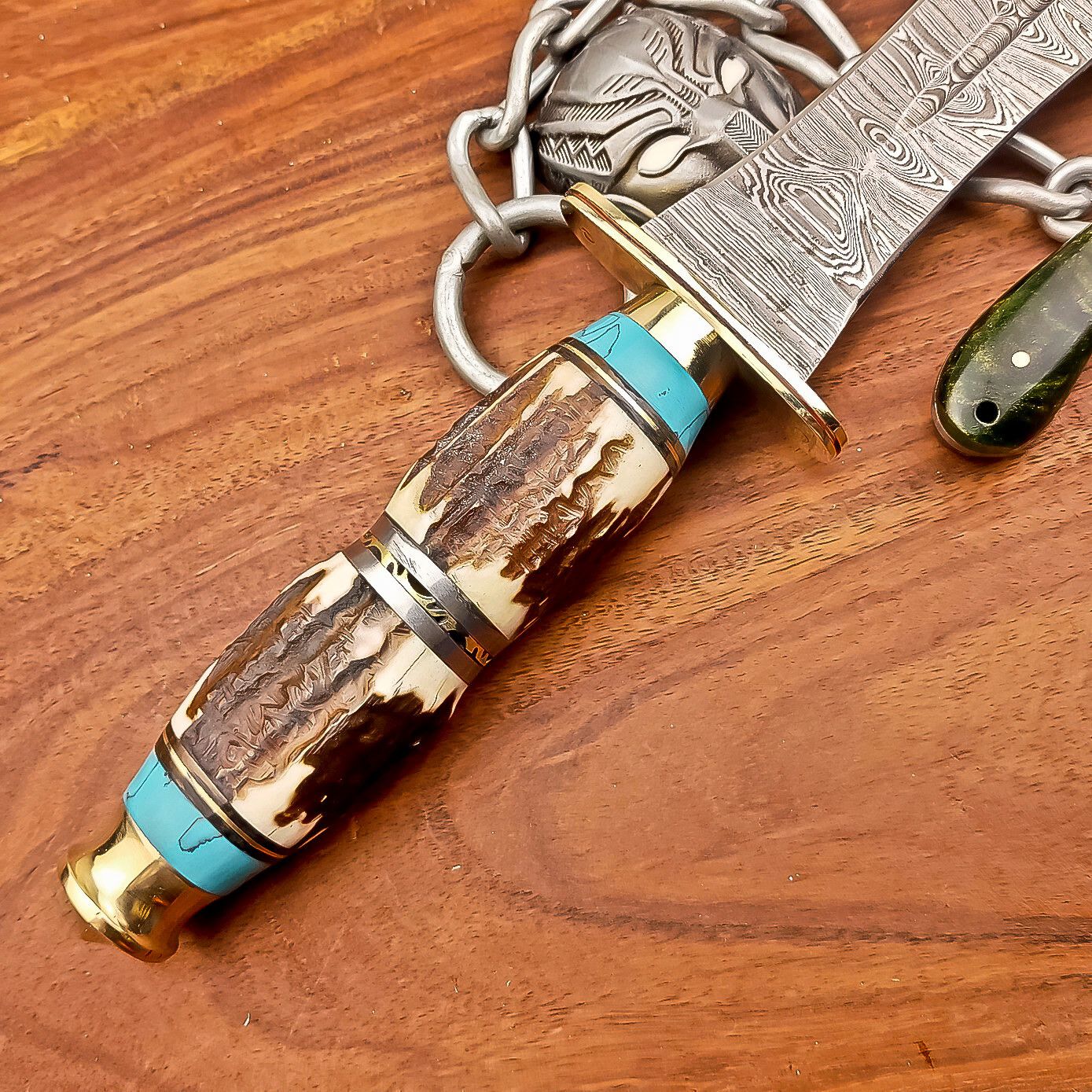 15 Inch Handmade Damascus Steel Hunting Bowie Dagger Knife with Stag Horn Handle
