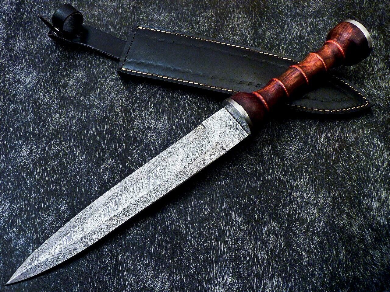 Each knife is a unique, handmade piece and comes with a custom-fit leather sheath, perfect for safe storage and portability. Designed in Pakistan by expert artisans, this Damascus hunting dagger is the ideal choice for collectors, outdoorsmen, or those seeking an extraordinary gift.