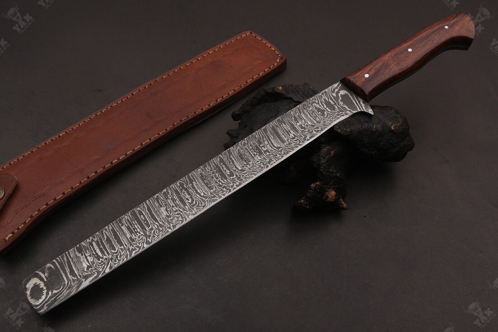 16" Custom Hand Forged Fire Damascus Steel Brisket & Chef Knife – Handmade Kitchen Knife