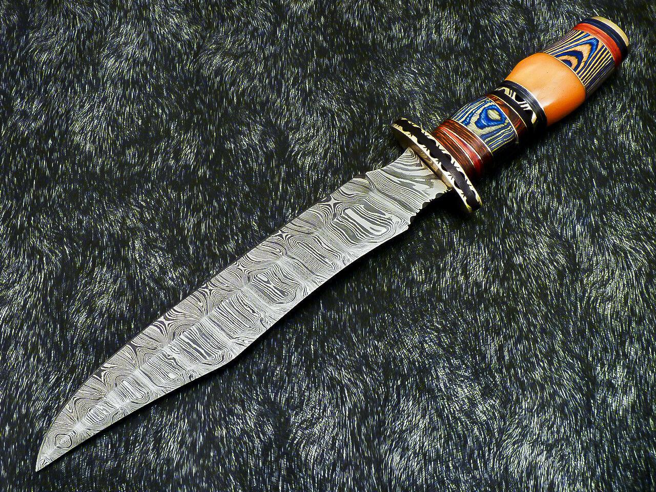 16” Handmade Damascus Bowie Knife | Hardwood Handle & Leather Sheath