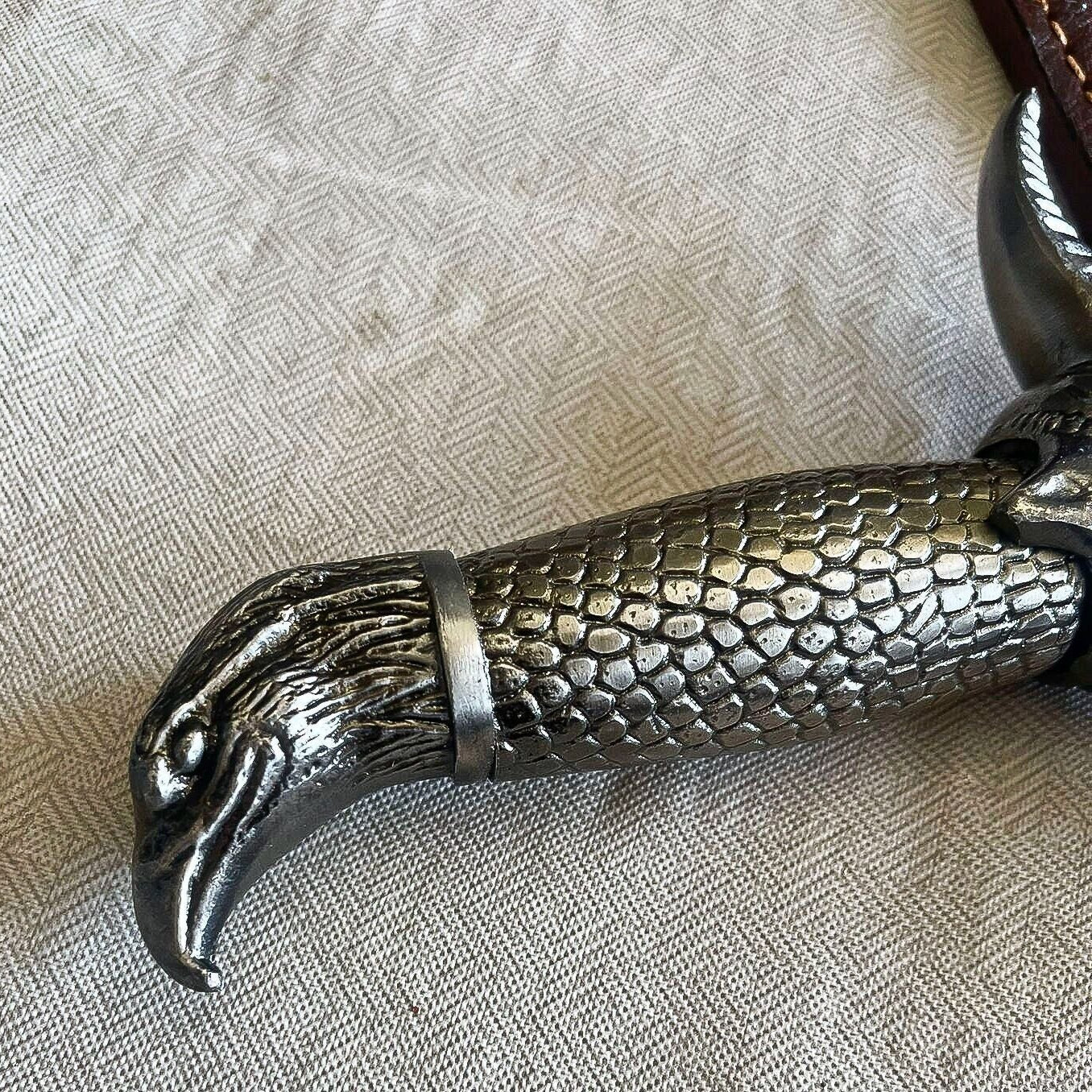 The handle is crafted from solid pewter, offering a comfortable, firm grip and a unique vintage aesthetic. Full-tang construction ensures unmatched durability, while the overall 16-inch length makes this blade an impressive centerpiece for any enthusiast or outdoorsman.