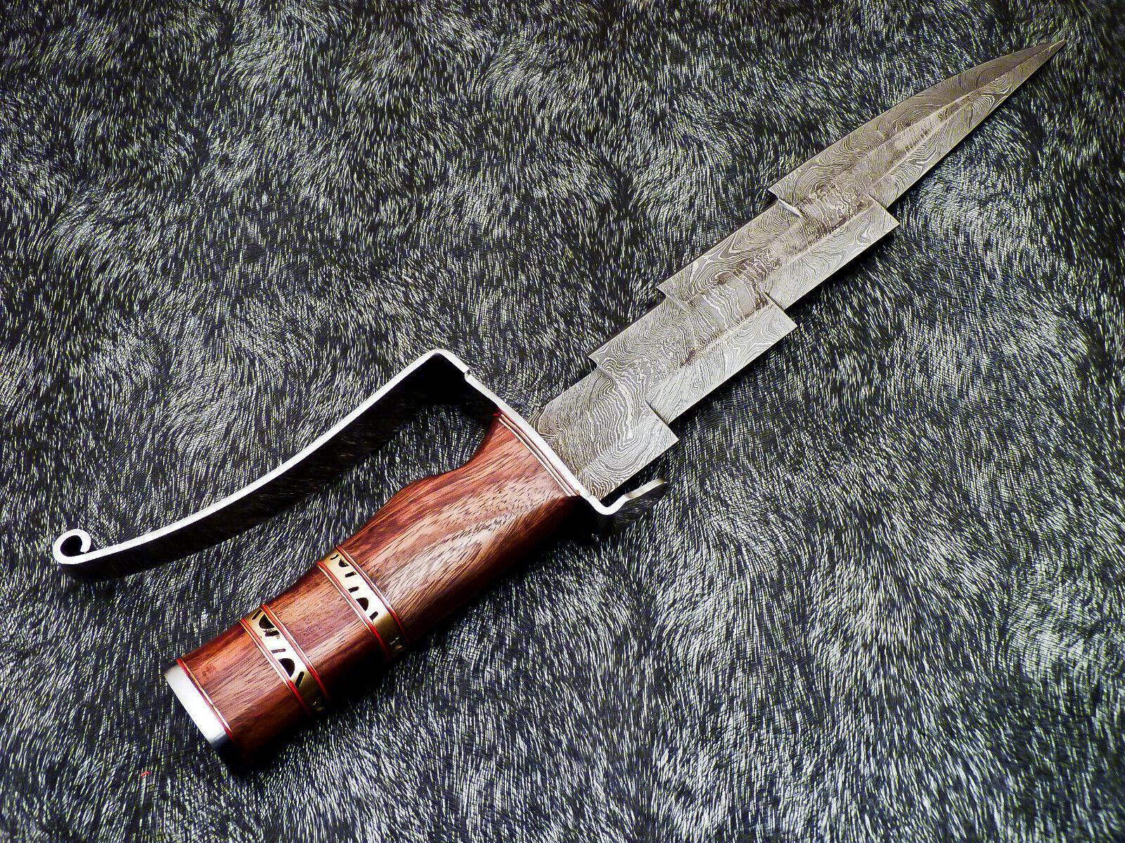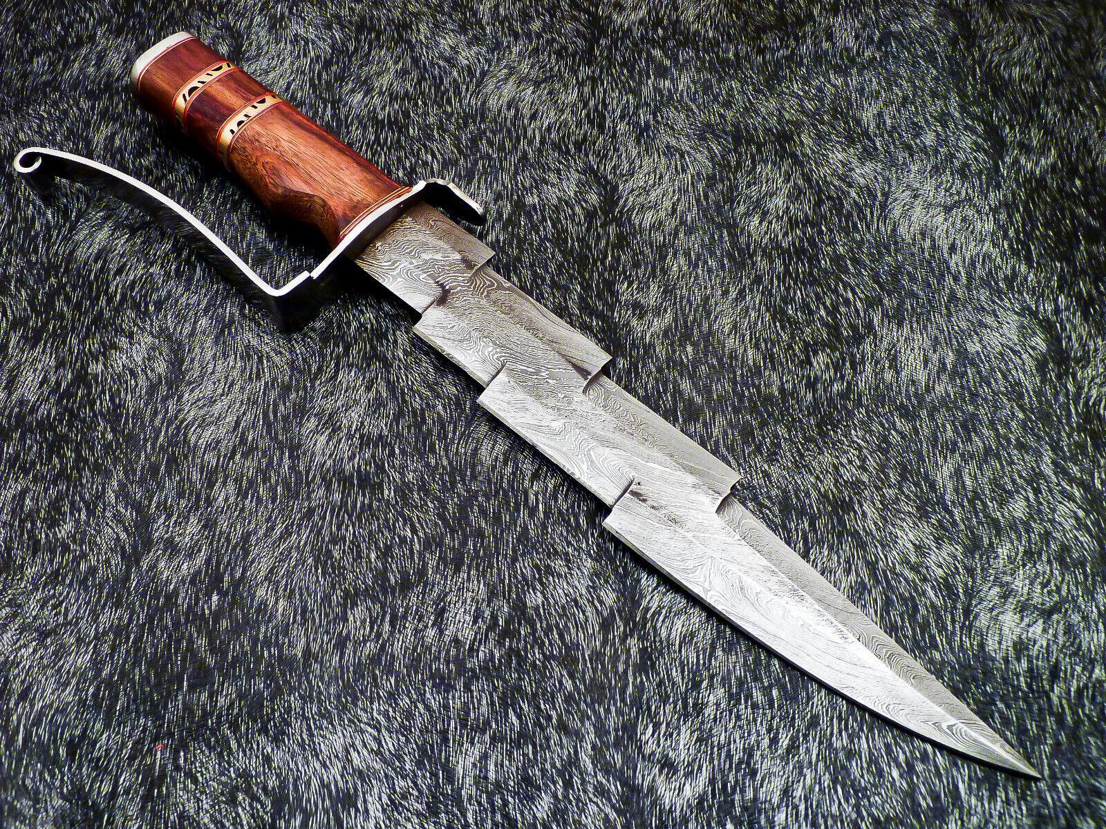 17 Inch Damascus Kris Blade Hunting Knife with Wood Handle