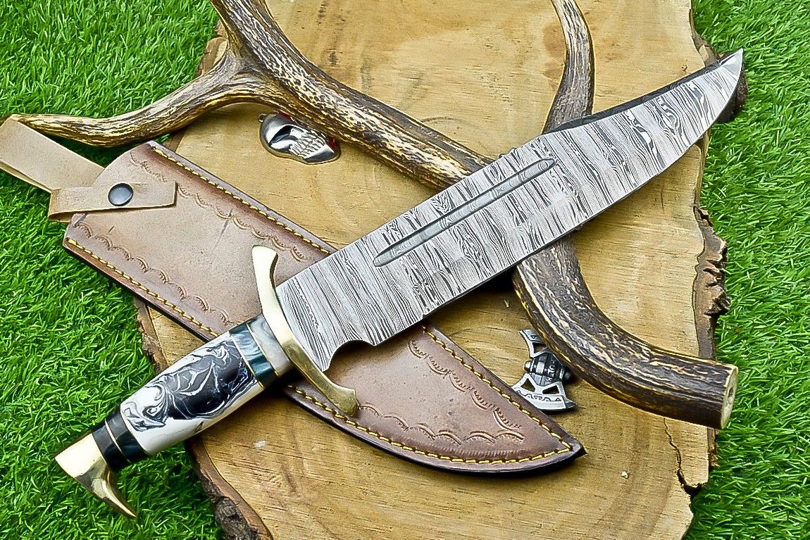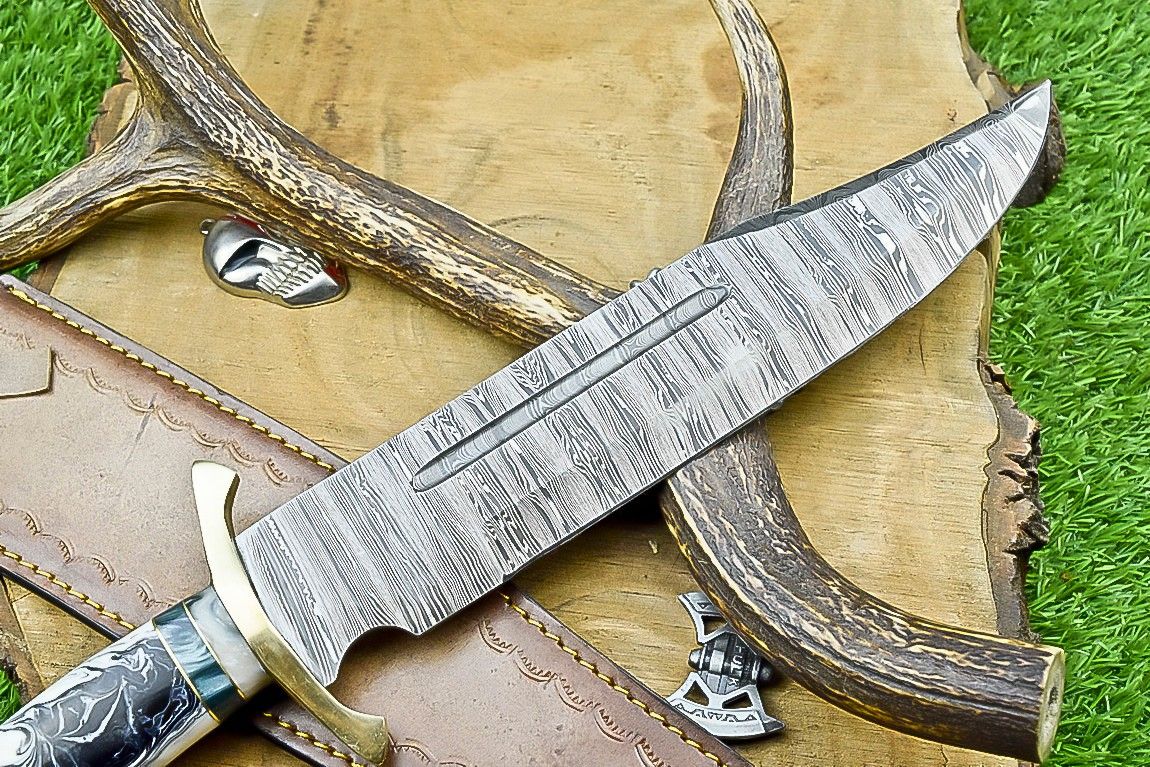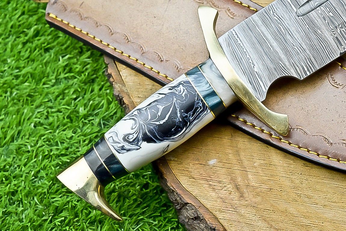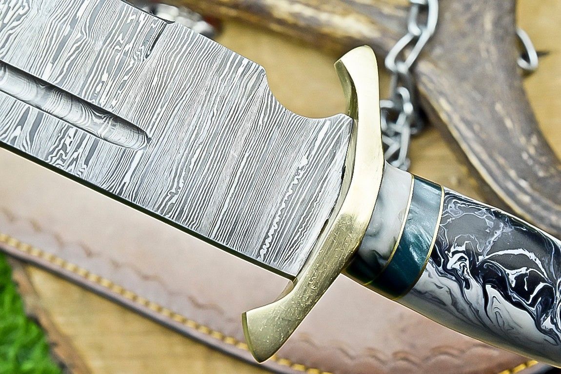 17 Inch Handmade Damascus Steel Bowie Knife with Resin Handle