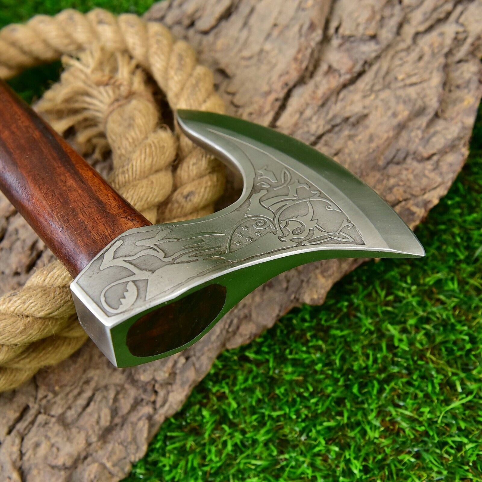 17 Inch Viking Hand Forged 1095 High Carbon Steel Tomahawk Axe with Rose Wood Handle