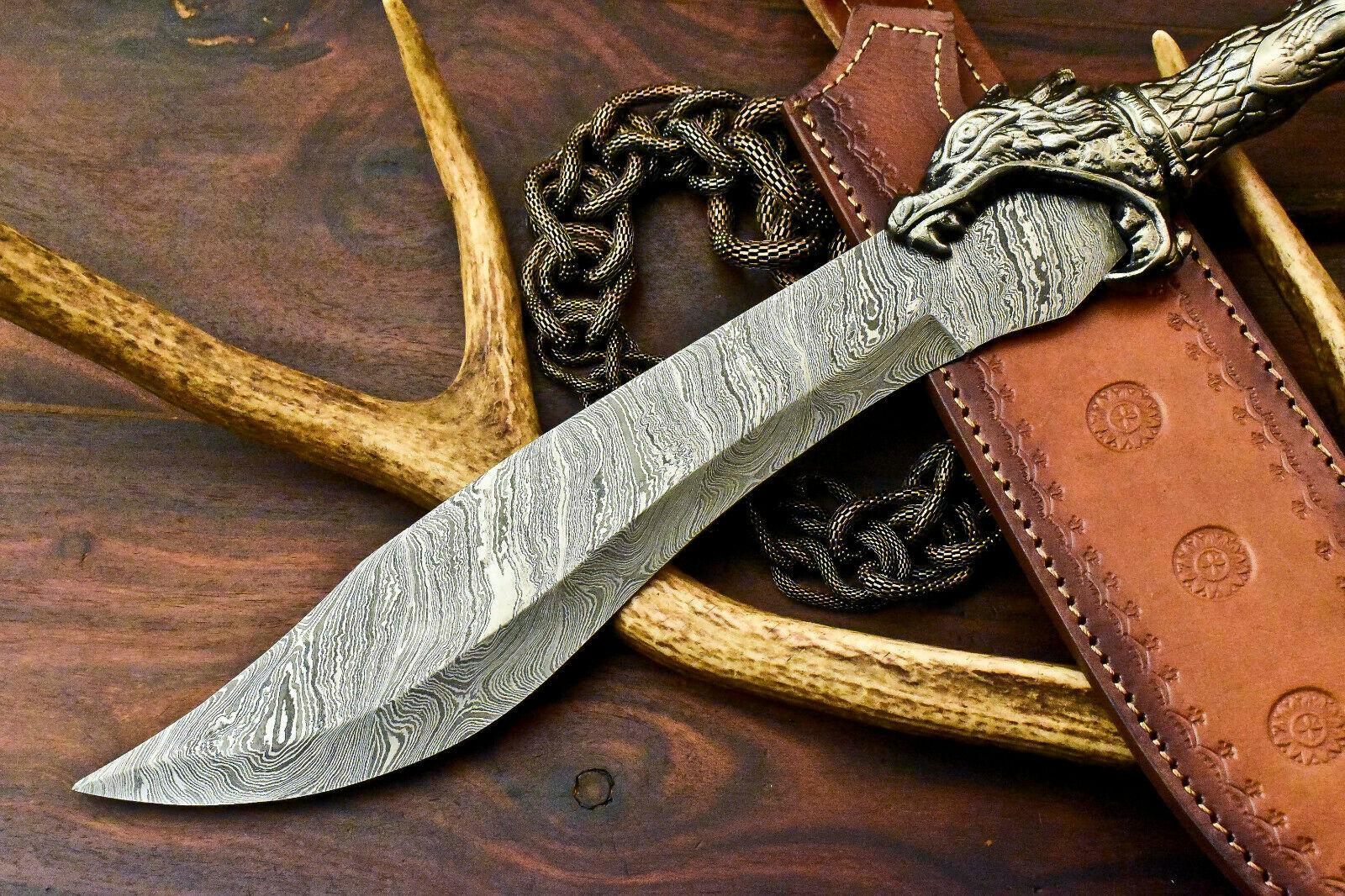 18” Damascus Bowie Knife – Pewter Grip & 12” Blade