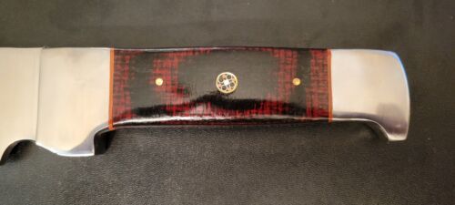This 18-inch handmade Bowie knife is built for serious hunters, survivalists, and collectors who demand the best in performance and craftsmanship. Forged from premium D2 tool steel, the 12-inch blade is heat-treated and air-hardened, combining high carbon and high chromium content for superior toughness and edge retention. With a Rockwell hardness of 58–60 HRC, the blade is professionally sharpened and polished, delivering an exceptionally sharp and durable edge for heavy-duty cutting, skinning, chopping, and survival use.The knife features a full tang construction for maximum strength and balance. Its ergonomic micarta handle, paired with a steel bolster and pommel, provides a secure and comfortable grip even in demanding outdoor conditions. Built to withstand the toughest environments, this Bowie knife is equally at home in hunting, bushcraft, camping, or survival situations.