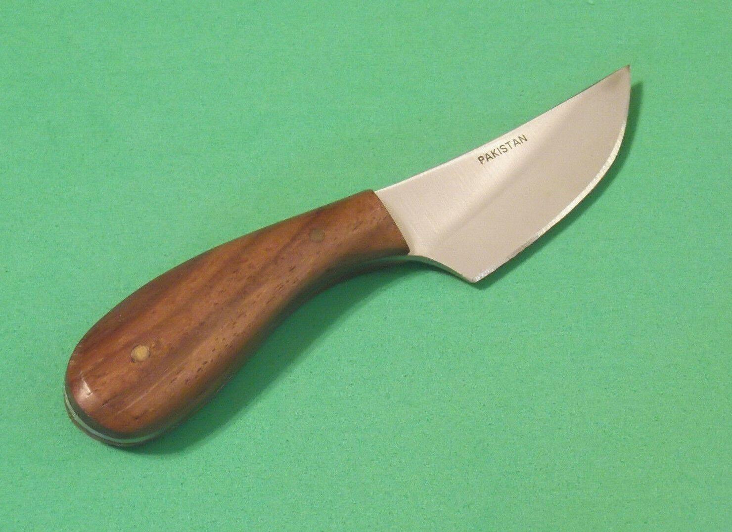 4.6" Small Skinner Patch Knife Stainless Steel Full Tang Blade Brown Wood Handle with Leather Sheath