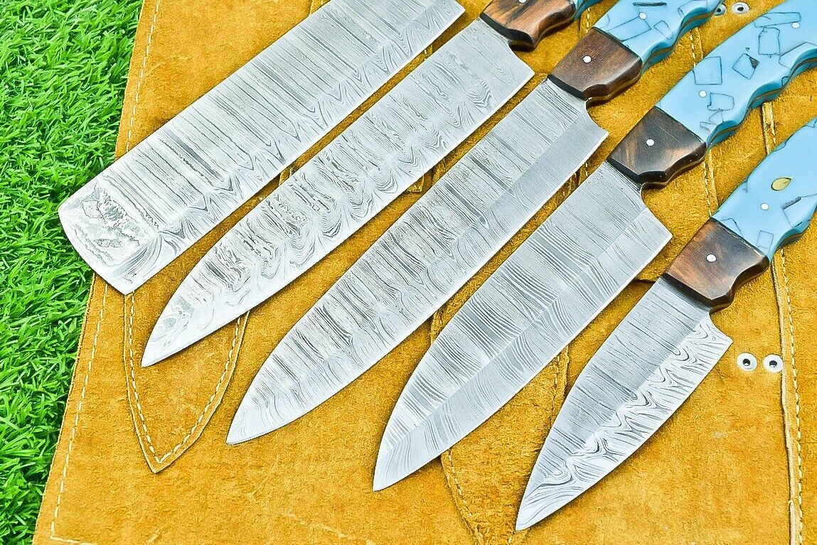 5 PCS Custom Handmade Damascus Steel Chef Knife Set with Wood Handles