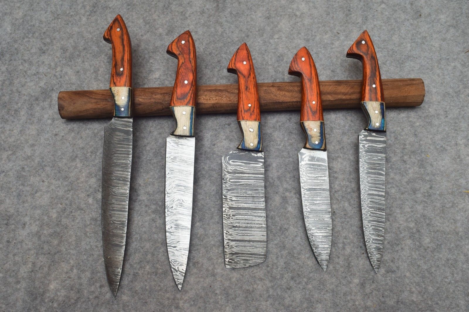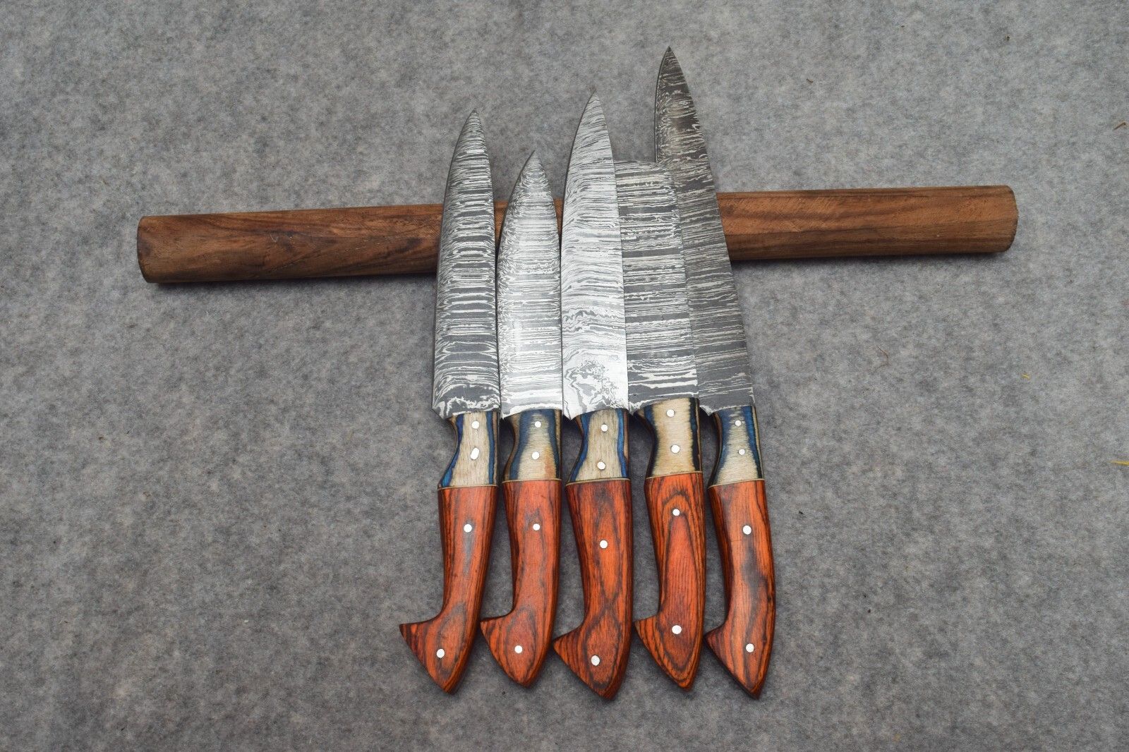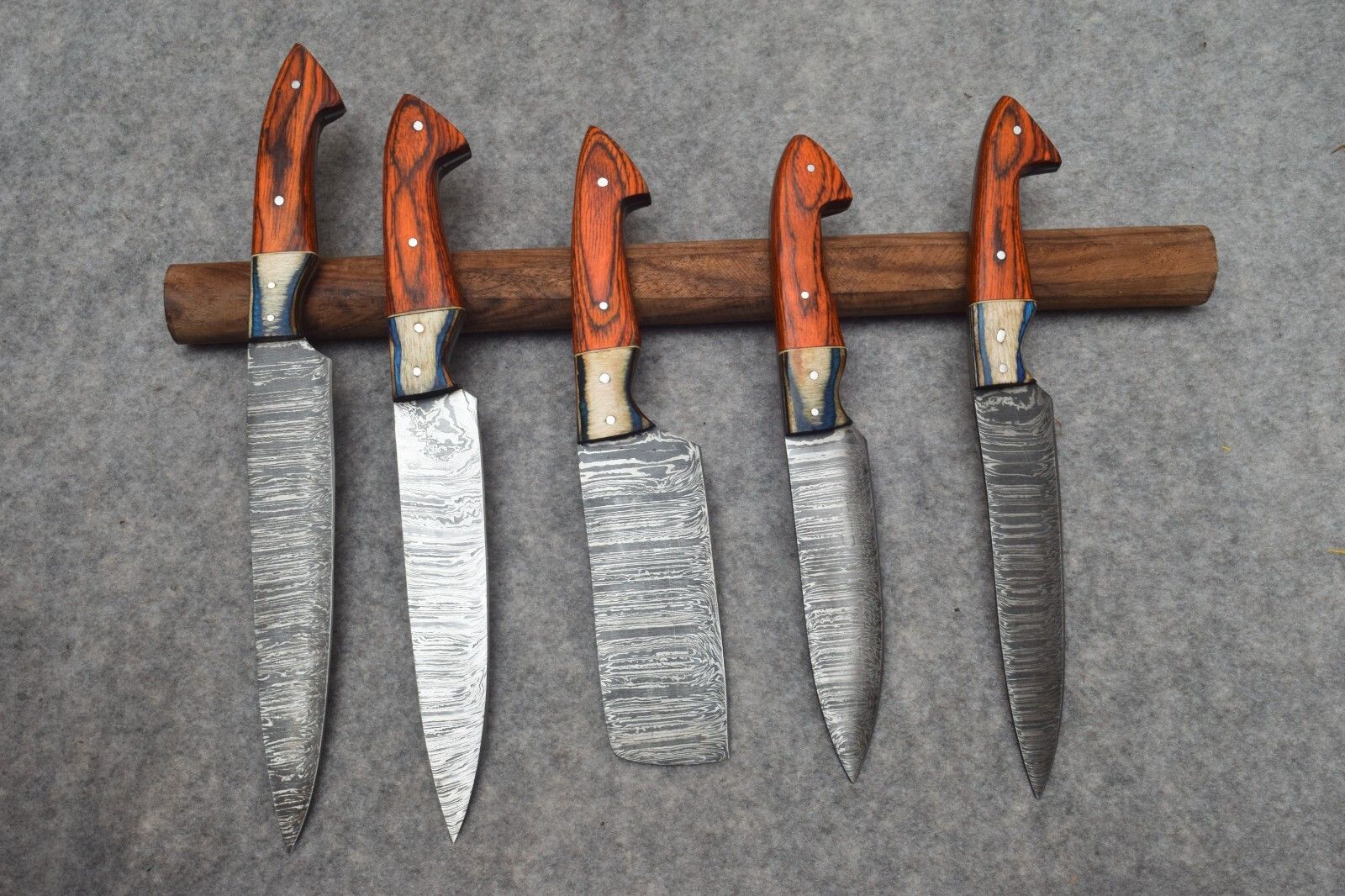 5 Pcs with Leather Roll, Handmade Professional Kitchen Knives