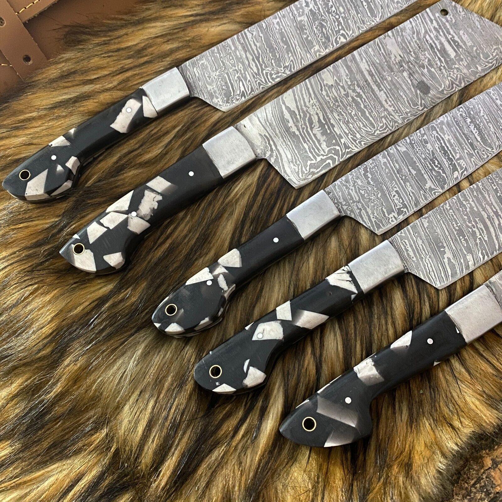 5-Piece Hand Forged Damascus Steel Hunting & Kitchen Clever Knives Set