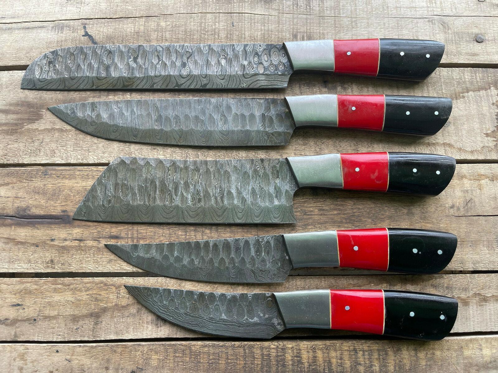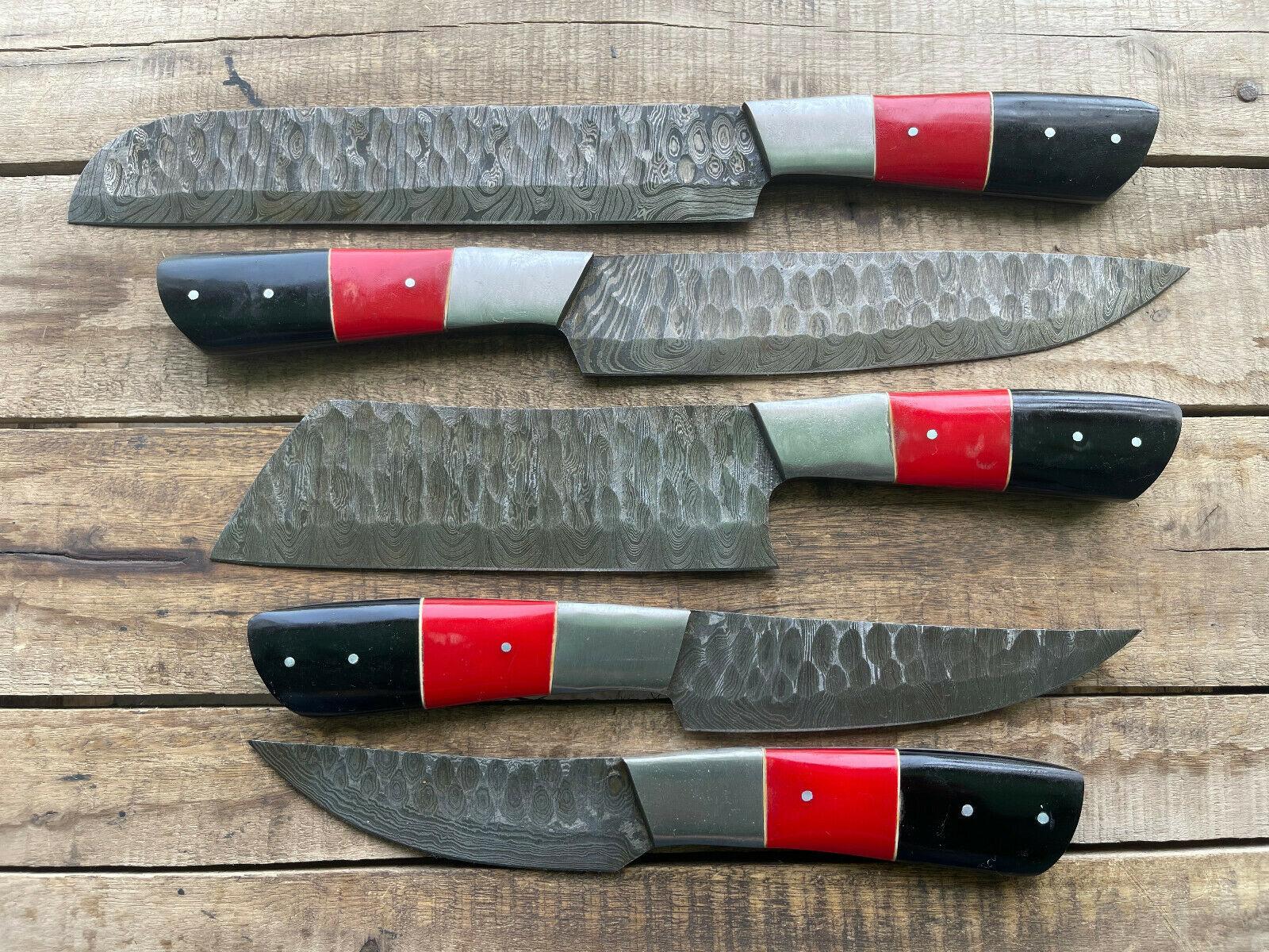 5-Piece Handmade Damascus Steel Kitchen Chef Knife Set with Wood Handles