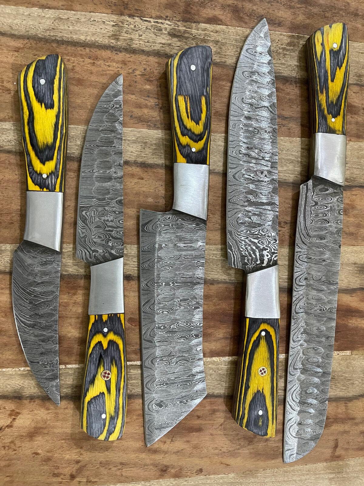5Pcs Custom Handmade Damascus Steel Chef Knife Set – Professional Kitchen Knives