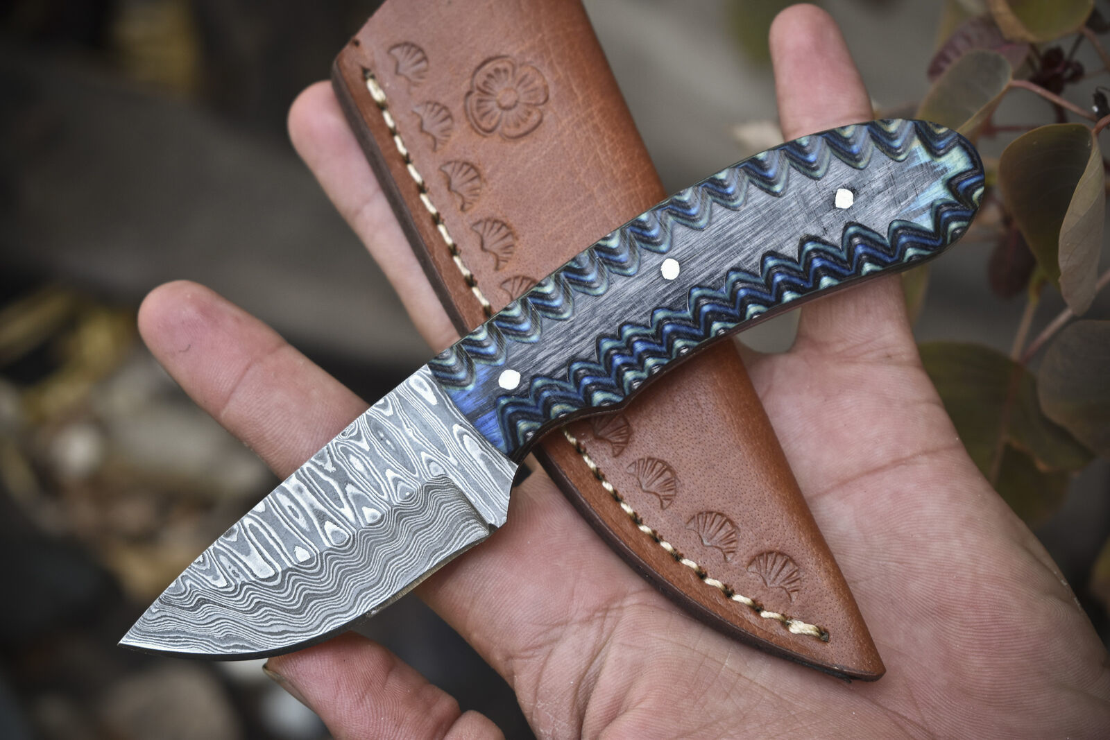 Each handmade skinner damascus knife comes with a hand-tooled leather sheath designed for secure carry and protection. Whether you're building a premium knife collection or looking for a rugged field companion, this damascus skinner hunting knife delivers performance and style in equal measure. No CNC or precut blanks—only true hand-forged craftsmanship in every detail.