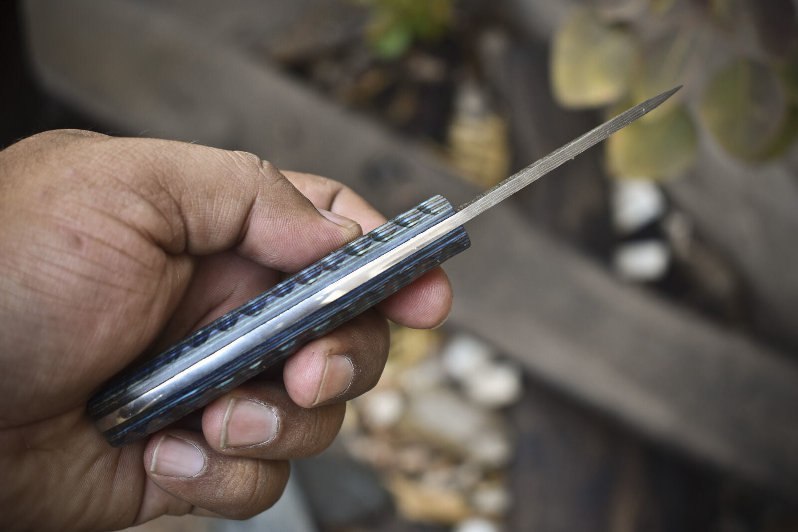 This forged skinner knife ladder damascus hard wood hunting collectible is a finely crafted tool made for precision, reliability, and aesthetic appeal. With an overall length of 6.5 inches, a blade length of 3.0 inches, and a 3.5-inch hardwood handle, it offers optimal balance and control for skinning game or detailed cutting tasks. The fixed blade is crafted from 1095 and 15N20 steel, folded multiple times to form a tight, clean ladder Damascus pattern that’s both visually striking and performance-ready.