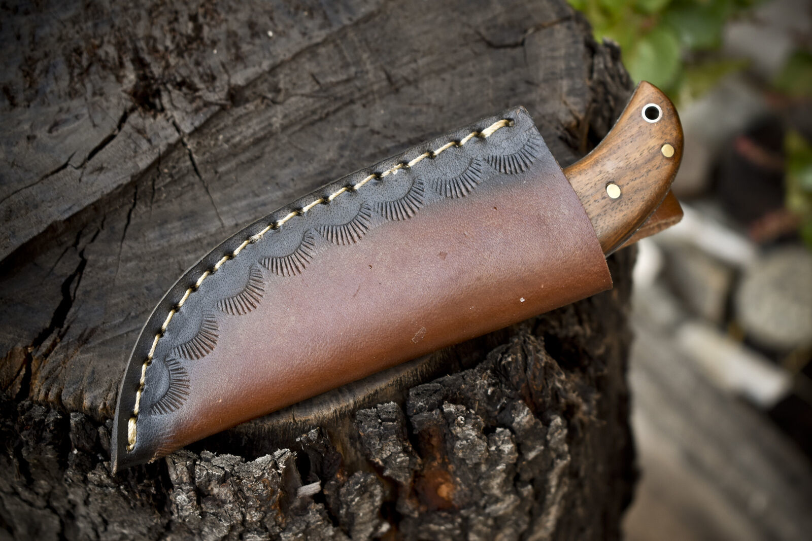 This damascus knife custom handmade fixed blade hunting knife skinner is ideal for field dressing, caping, and fine cuts, making it a top choice for precision work. The natural walnut handle provides a warm, secure grip, and its compact size makes it an excellent option for those seeking a reliable EDC blade. It includes a hand-tooled leather sheath for safe transport and storage.