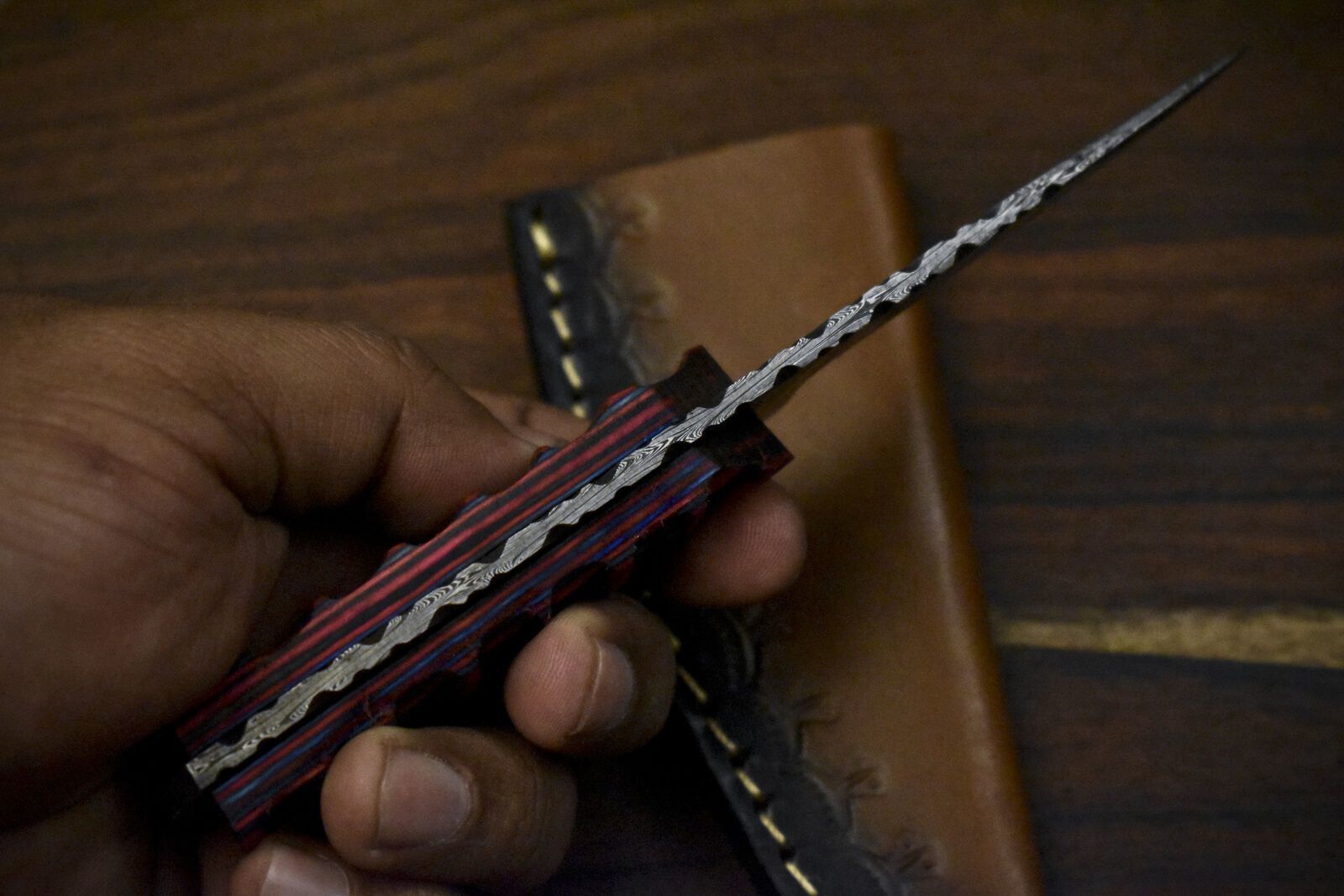 Every knife includes a handmade leather sheath for protection and ease of carry. Crafted without the use of CNC machines or pre-cut blanks, this handmade skinner damascus knife showcases traditional forging skills and offers unmatched individuality.