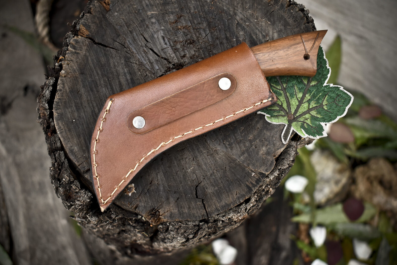 The handle, crafted from premium walnut wood, measures approximately 4.0 inches and offers a comfortable grip with natural grain patterns that make each knife one of a kind. The knife's full tang construction guarantees strength and balance, making it perfect for skinning, dressing game, or general outdoor use.