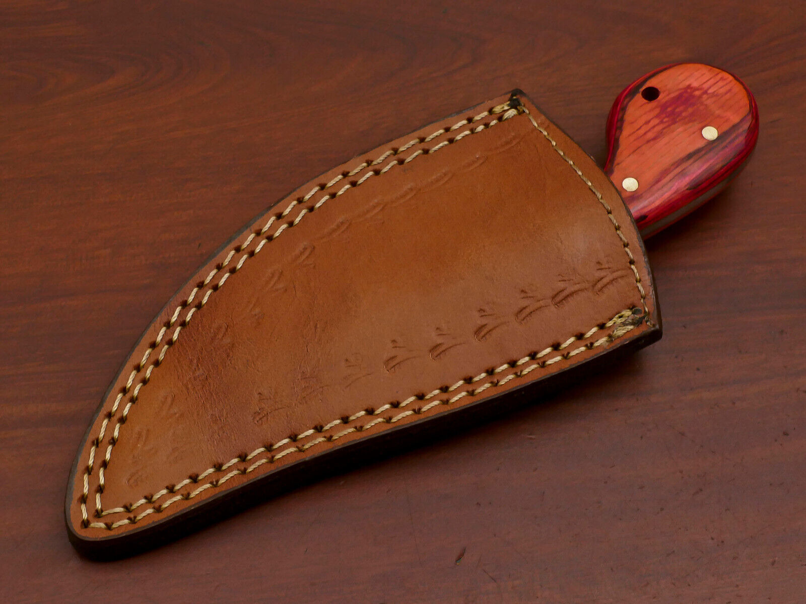 7" Stainless Steel Skinner Knife Full Tang Pakka Wood Handle with Leather Sheath