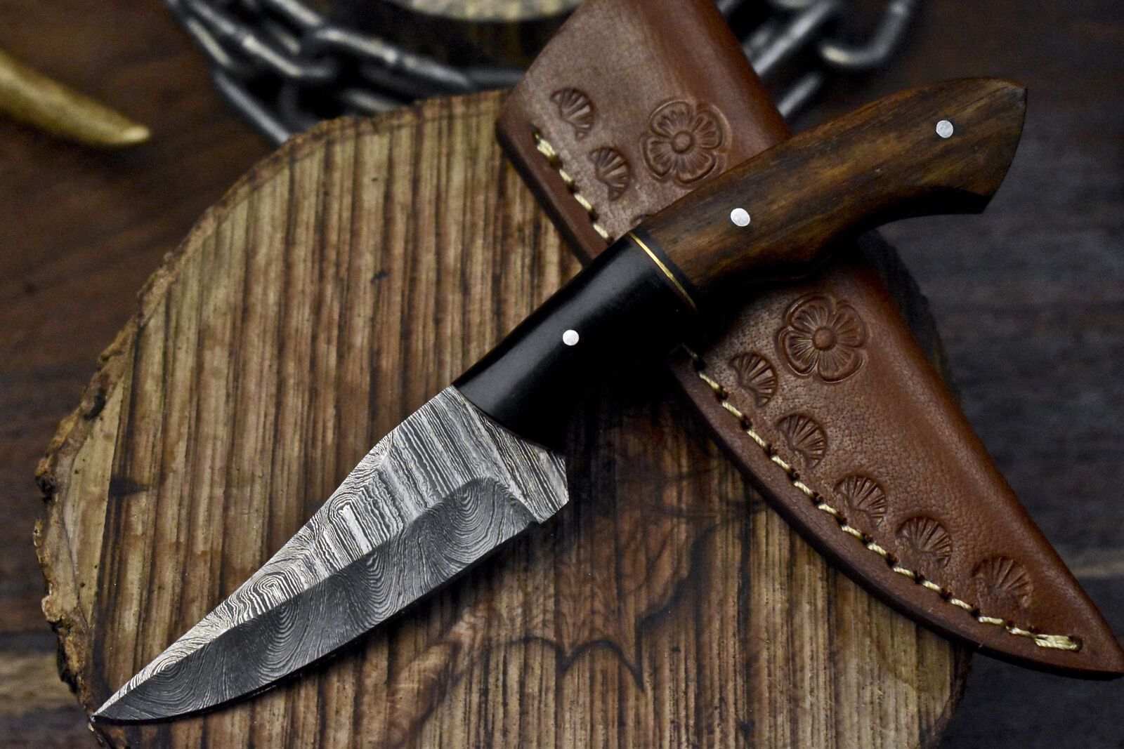 This damascus skinner hunting knife comes complete with a high-quality handcrafted leather sheath for protection and carry. Whether you're looking for a reliable hunting companion or a thoughtful gift, this walnut damascus skinner knife offers both utility and elegance in one unforgettable package. Built without CNC machines or precut blanks, this knife showcases true artisanal craftsmanship in every curve.