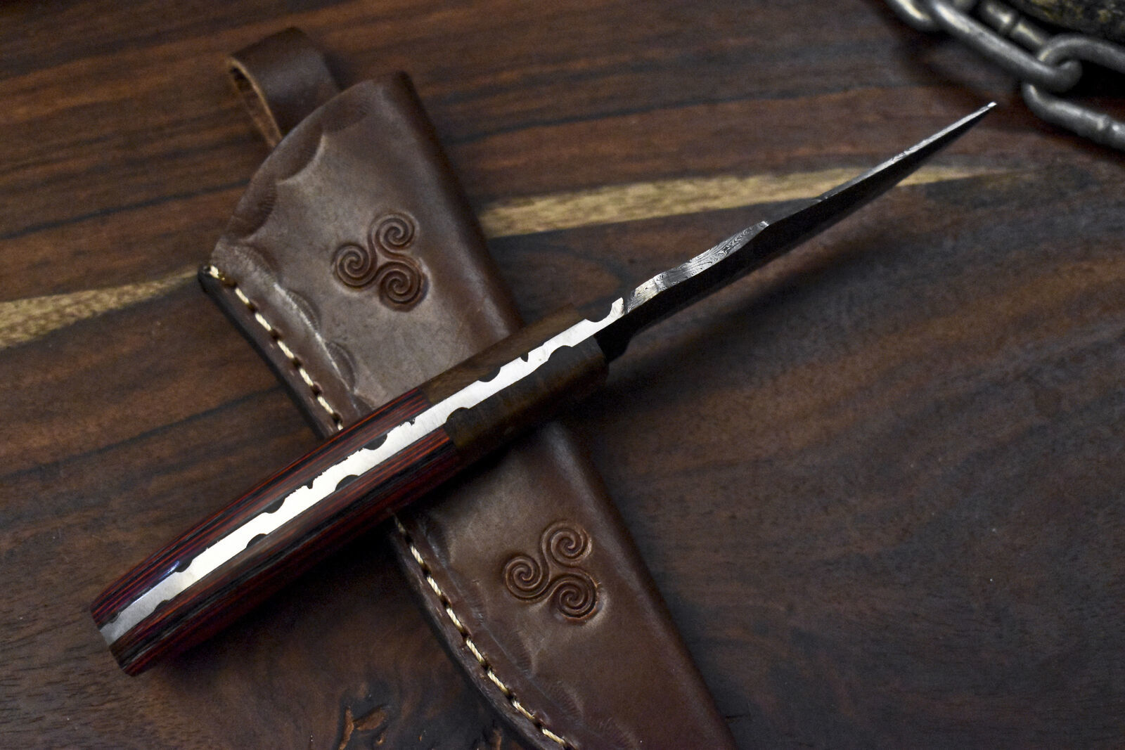 Each knife comes with a handmade thick leather sheath, hand-stitched and tooled for rugged protection and easy carry. Every piece is unique, forged by hand without CNC or waterjet machinery, making it truly one-of-a-kind.
