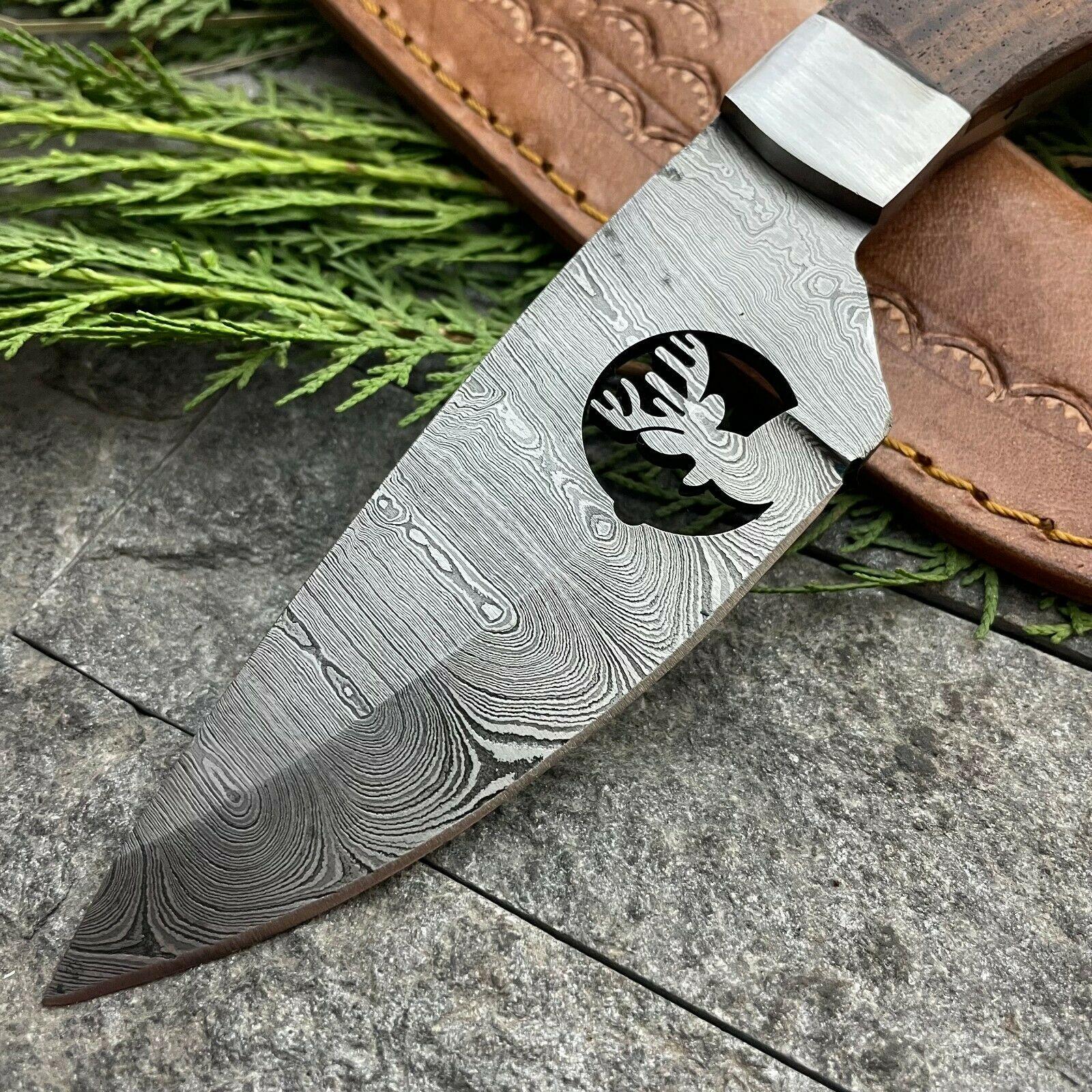 The 4.0-inch razor-sharp blade is tempered to a hardness of 50–55 HRC, ensuring excellent edge retention while remaining easy to sharpen. Its wood handle with a steel bolster offers a secure grip, perfect for hunting, camping, and outdoor adventures. The knife comes complete with a hand-stitched leather sheath for safe storage and convenient carry.