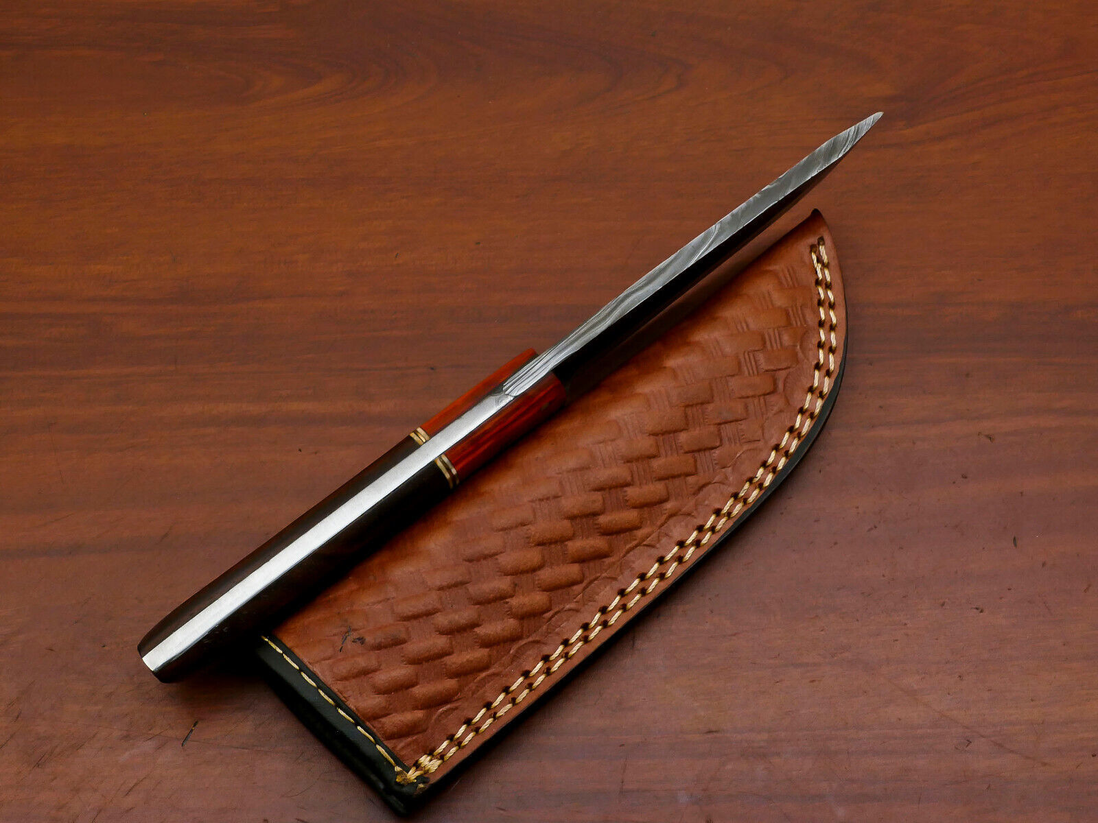 8.5" Handmade Damascus Fixed Blade Hunting Knife – Rosewood & Pakka Wood Handle | Heritage Forge