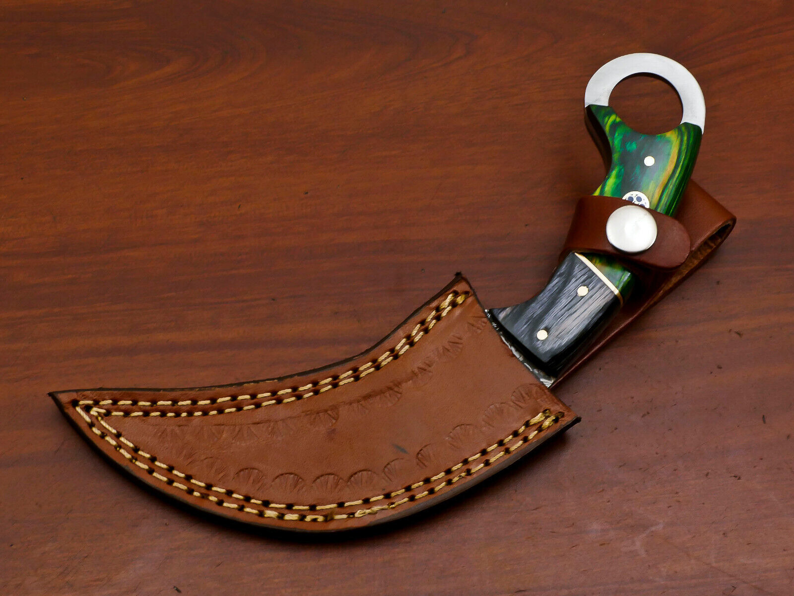 Inspired by the iconic Karambit silhouette, this dagger knife is engineered for tactical use, hunting, and close-quarters precision. The ergonomic pakka wood handle is both visually striking and built for control, fastened with brass pins and sealed with industrial-grade epoxy for long-term durability and water resistance.