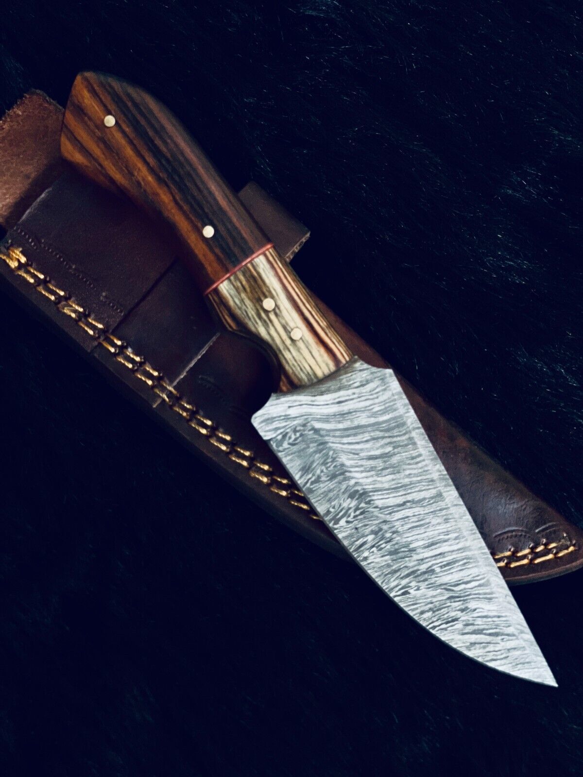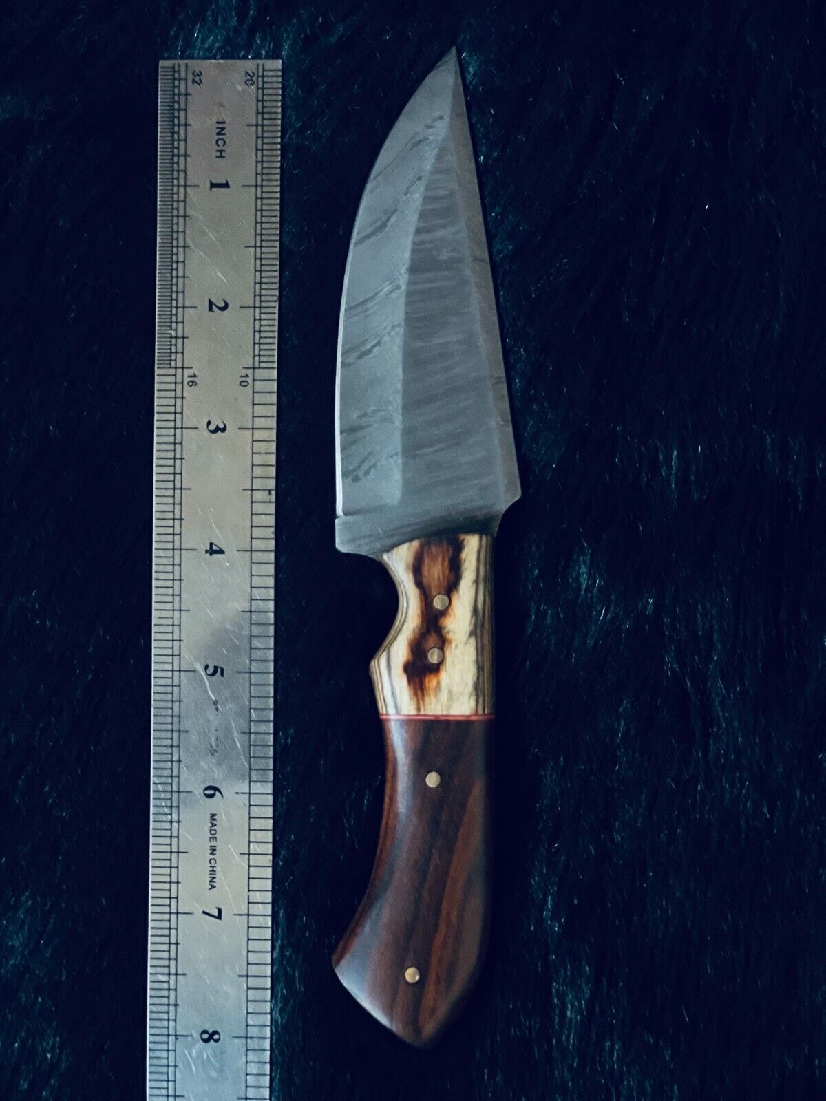 8" Camel Bone & Wood Handle Damascus Skinner Knife – Handmade Hunting Blade