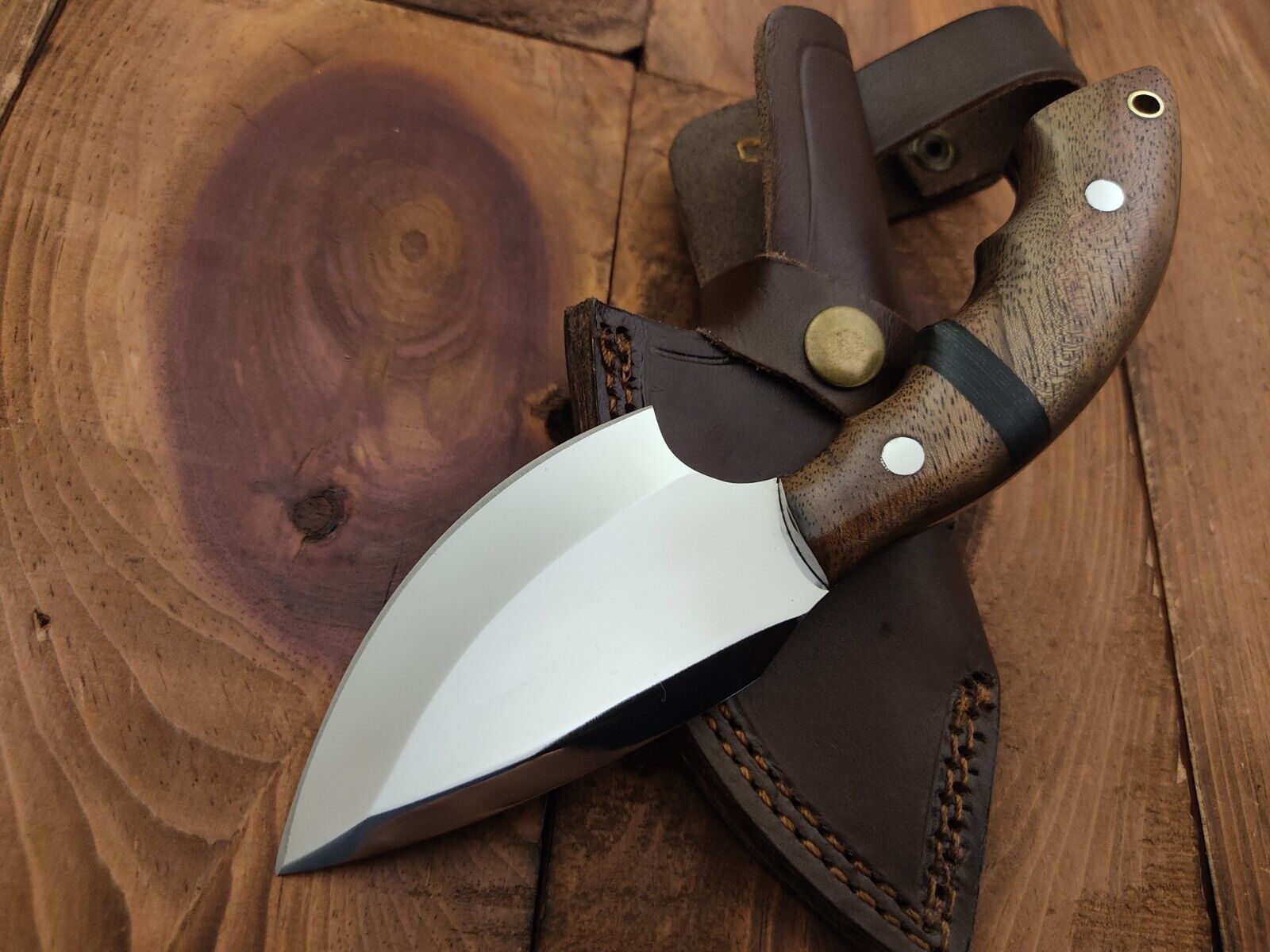 The Heritage Forge 8" Custom Handmade 440C Steel Survival Camping Skinner Knife is crafted for hunters, campers, and outdoor enthusiasts who demand a reliable and durable tool. The 3.4" 440C stainless steel blade is razor-sharp, corrosion-resistant, and 4mm thick, making it perfect for skinning, field dressing, and general outdoor tasks. The 4.4" hardwood handle is ergonomically designed for a secure, comfortable grip, providing balance and control during extended use. Full tang construction ensures strength and durability, making this skinner knife a dependable companion in survival and camping scenarios. Each knife comes with a hand-stitched leather sheath, offering safe and convenient carry on belt or pack. The beautifully worked blade and polished handle give the knife a distinctive, handcrafted look, blending functionality with style. Whether used for hunting trips, bushcraft, or as a collectible, Heritage Forge combines traditional craftsmanship with premium materials, delivering a knife that performs in the field and impresses on display.