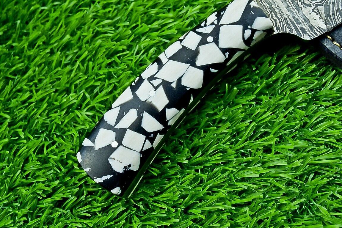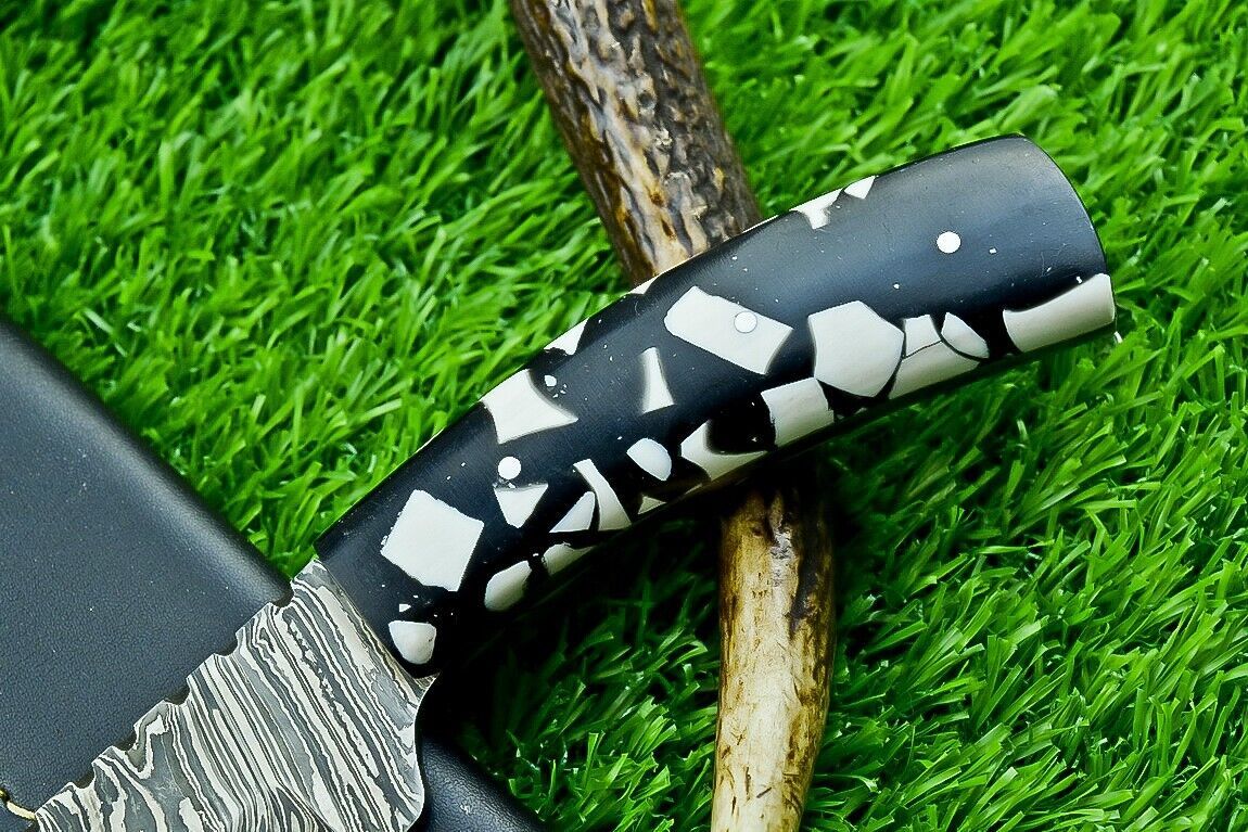 8" Custom Handmade Damascus Steel Bowie Knife – Resin Handle with Filework Spine