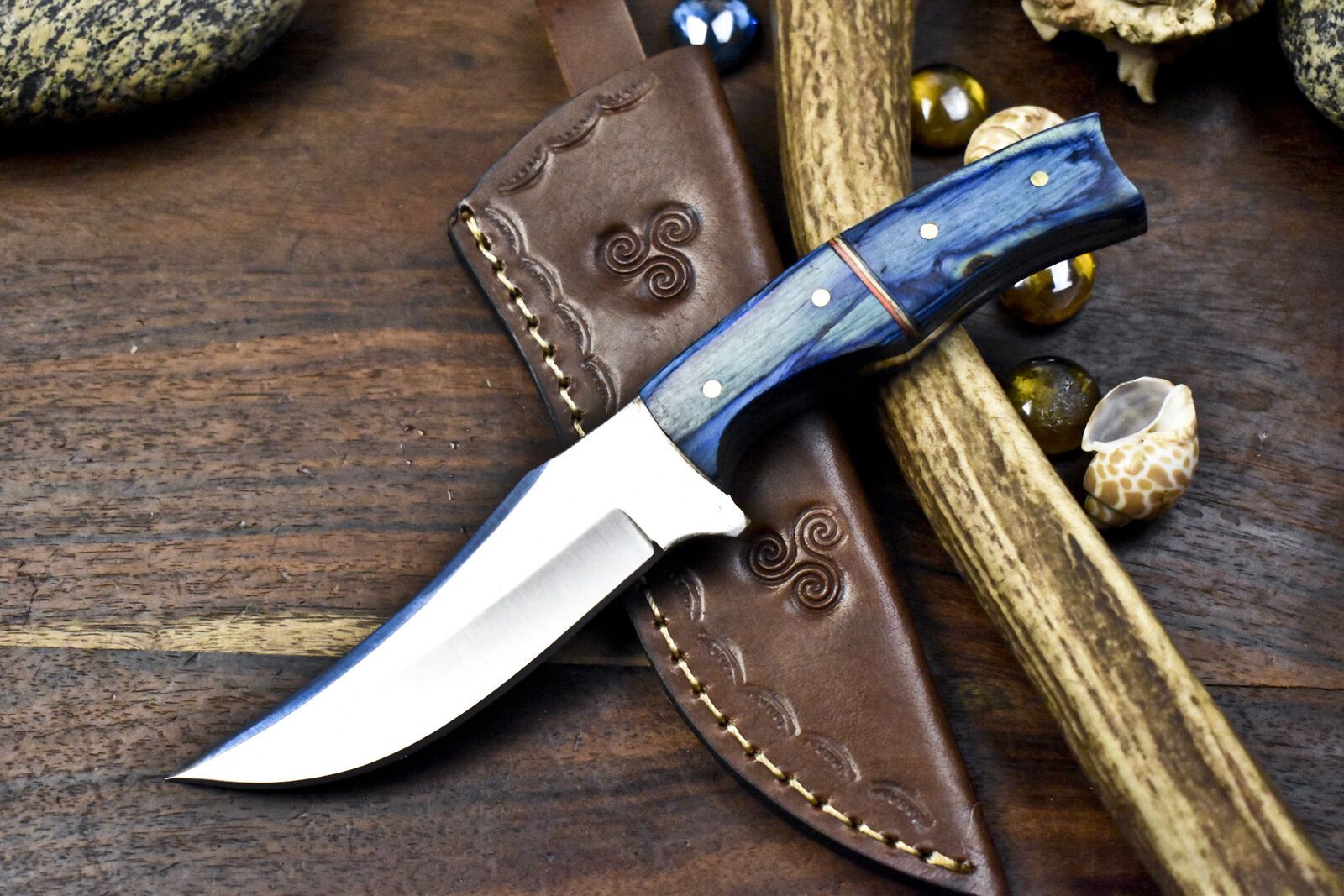 The Heritage Forge custom skinner knife is built with precision and tradition, making it a trusted tool for hunters, outdoorsmen, and collectors. Crafted with a 4.0-inch AUS-8 stainless steel blade, this knife is oil tempered to 58–60 HRC, ensuring durability, sharpness, and long-lasting edge retention. Known for its corrosion resistance, AUS-8 steel makes this blade a reliable choice for fieldwork, skinning, and outdoor use in all conditions.