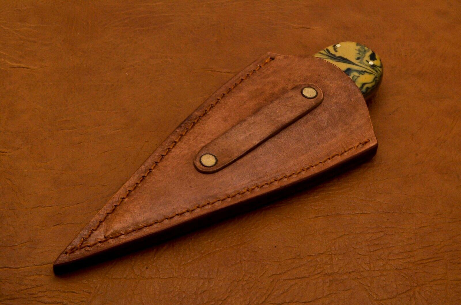 This knife includes a full-grain leather sheath for secure storage and quick access, making it a functional tool and a collectible work of art. Durable, chip-resistant, and 100% handmade, it’s a trusted companion built to last for generations.