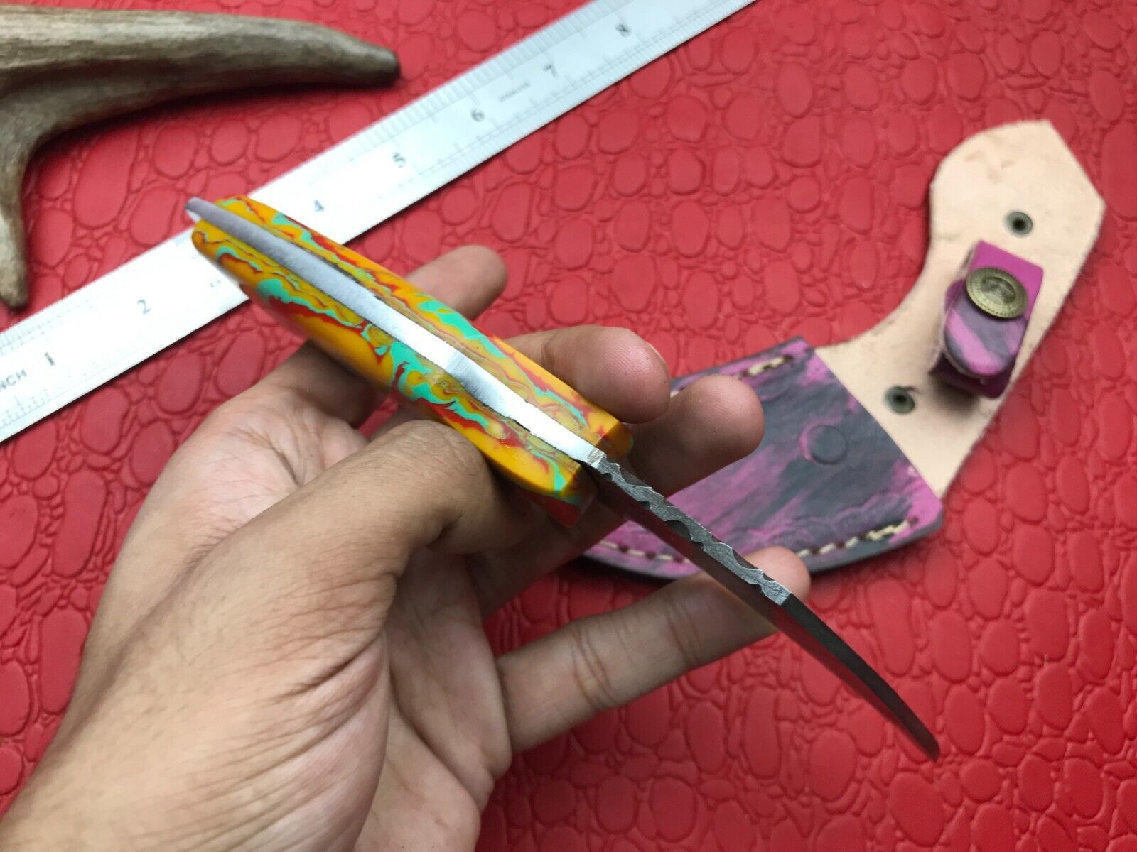 - Hand forged damascus steel karambit with unique layered pattern