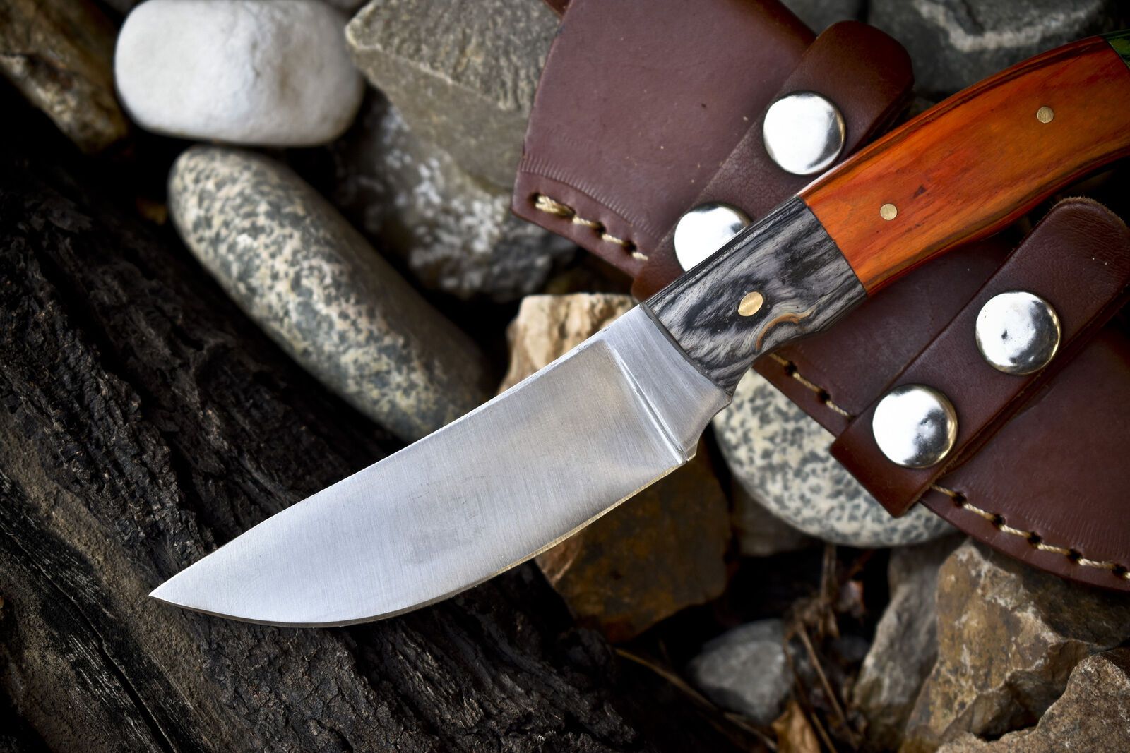 The wide, short blade design makes it perfect for skinning game, field dressing, and precision cutting tasks. The hardwood handle is paired with a wooden bolster, providing a secure and natural grip. Built with a focus on functionality and craftsmanship, this knife is not just practical but also visually appealing, making it a standout in any collection.
