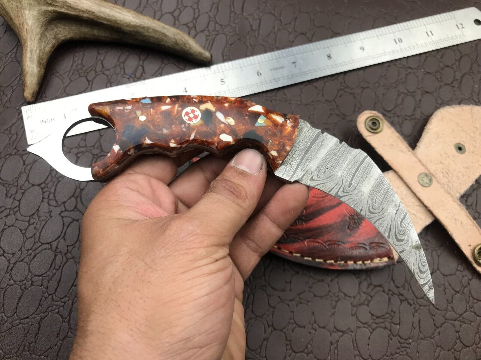 8" Handmade Best Damascus Karambit Damascus Steel Karambit Knife with Resin Handle