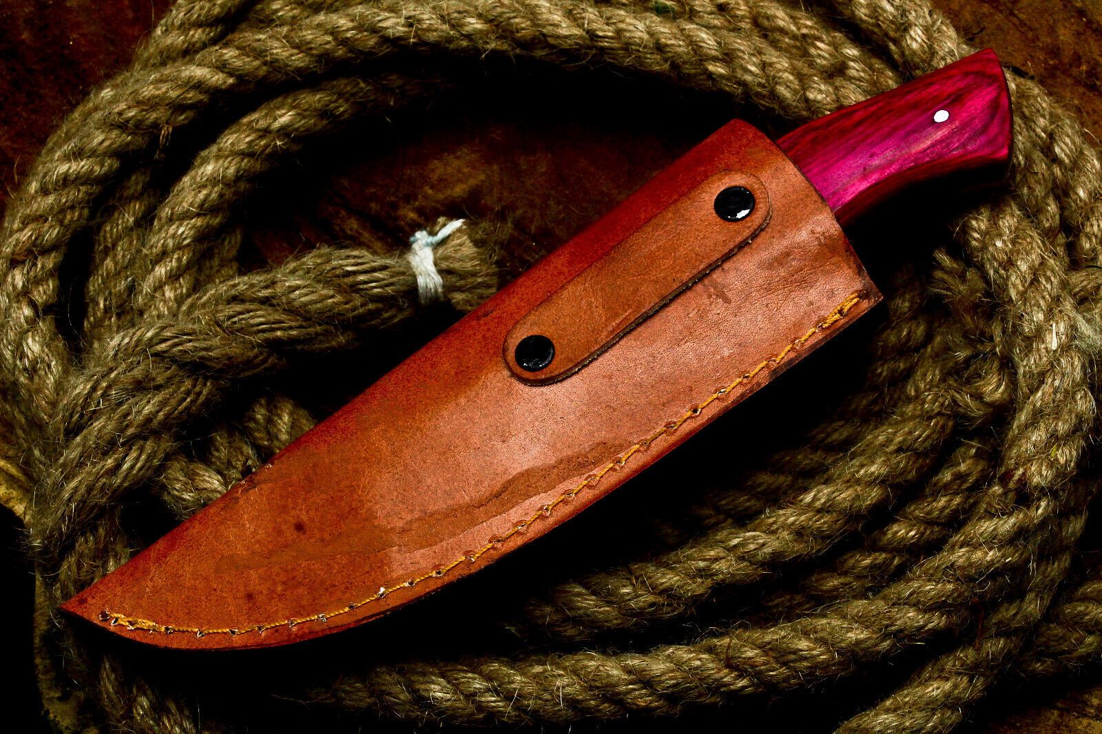 With a hardness rating of 55–60 HRC, this skinner is built to withstand intense conditions while maintaining strength and sharpness. A custom leather sheath is included, offering secure storage and convenient belt carry.
