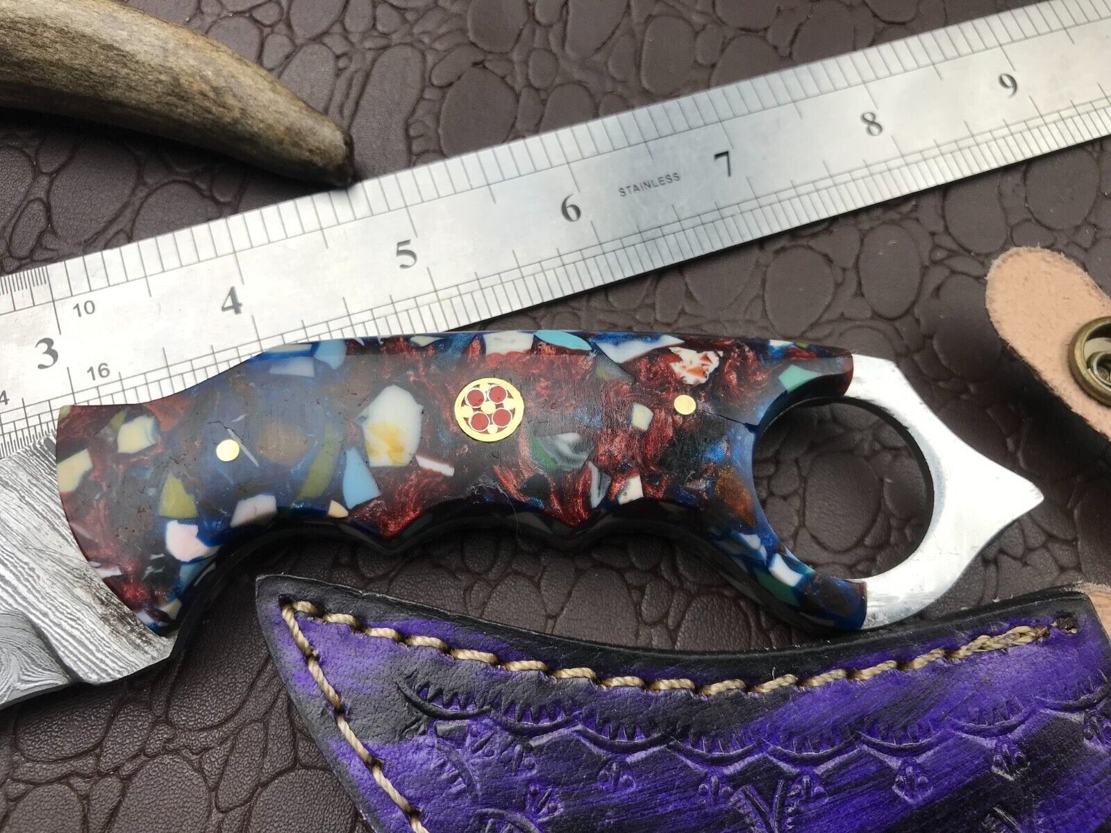 8" Handmade Damascus Karambit Full Tang Damascus Steel Karambit Knife with Resin Handle