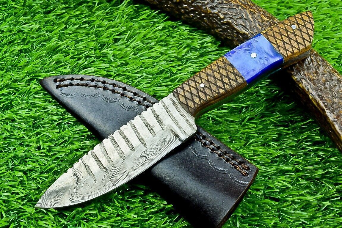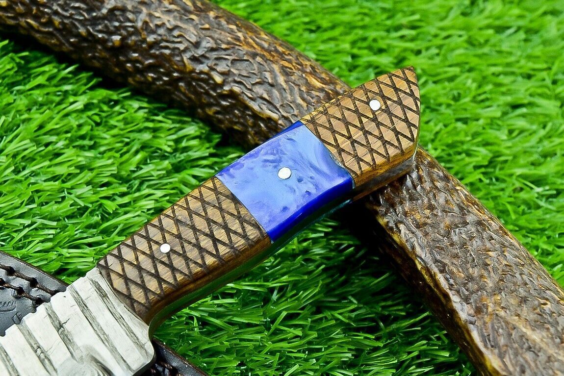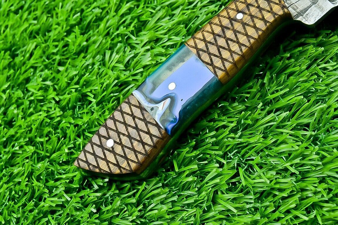 8" Heritage Forge Damascus Steel Bowie Knife – Full Tang Blade & Resin-Wood Handle