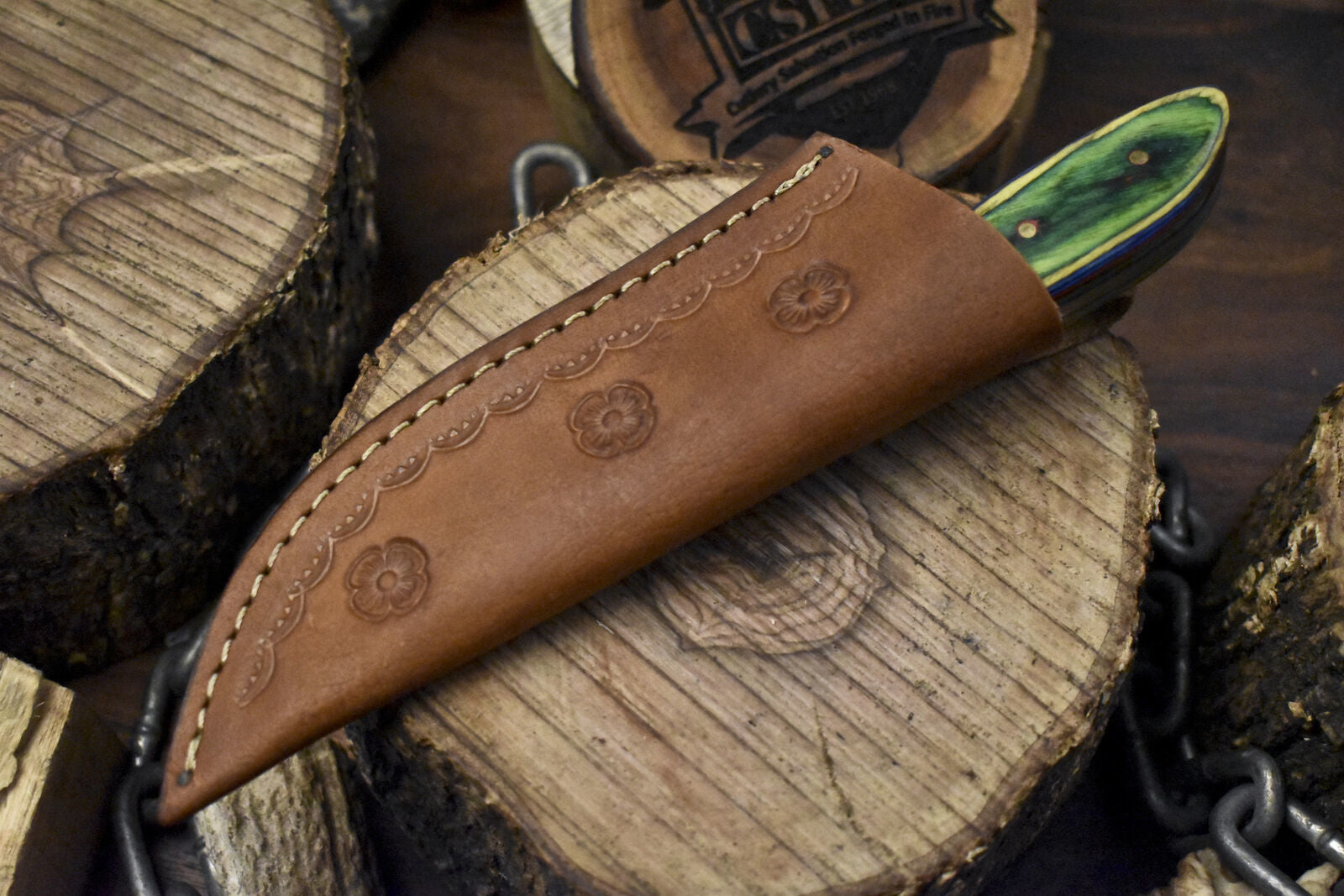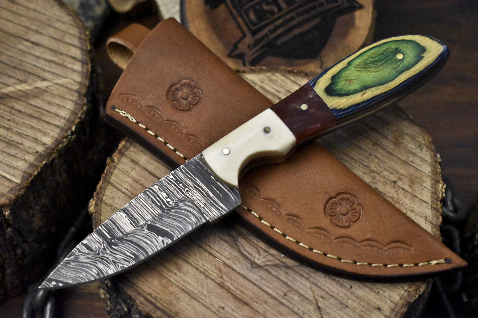 This knife includes a premium hand-tooled leather sheath, designed for both beauty and durability. Whether you're a collector, hunter, or looking for a standout gift, this tactical skinner knife offers a refined balance of performance and craftsmanship.