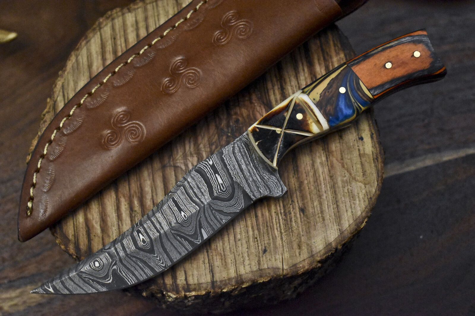 8" Twist Damascus Skinner Knife Mixed Handle Handmade Everyday Carry Blade