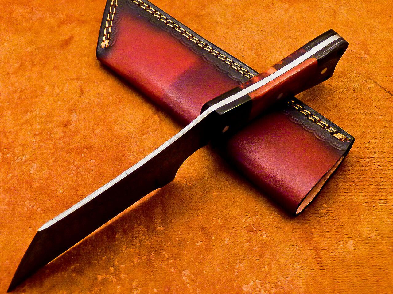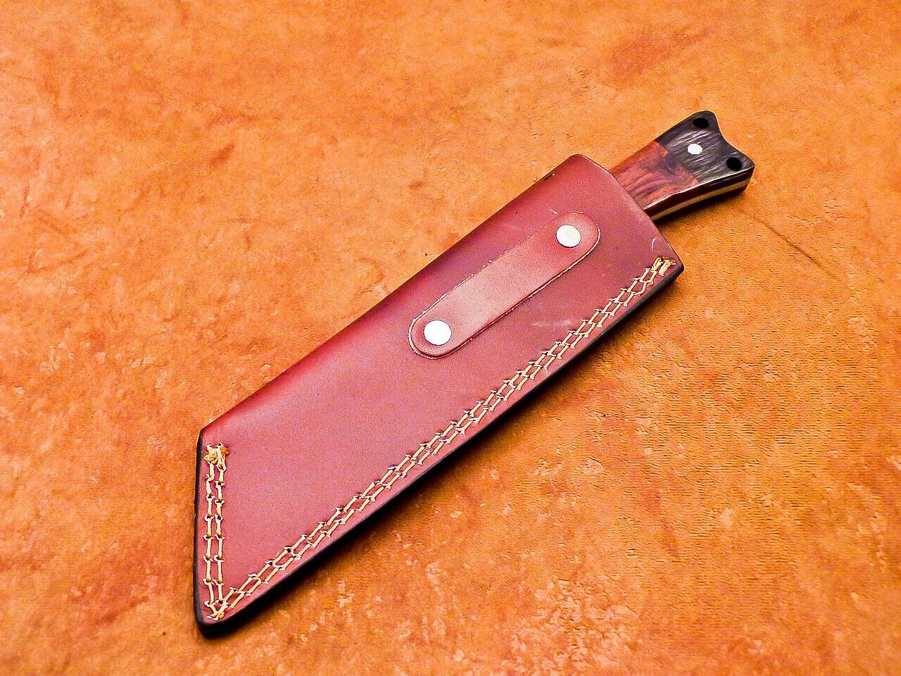 This full tang Bowie knife is ideal for camping, hunting, and bushcraft tasks, delivering reliable performance when it matters most. Each knife is 100% handmade, meaning no two pieces are exactly alike, adding to its uniqueness and collectibility. Comes with a custom leather sheath for protection and portability.