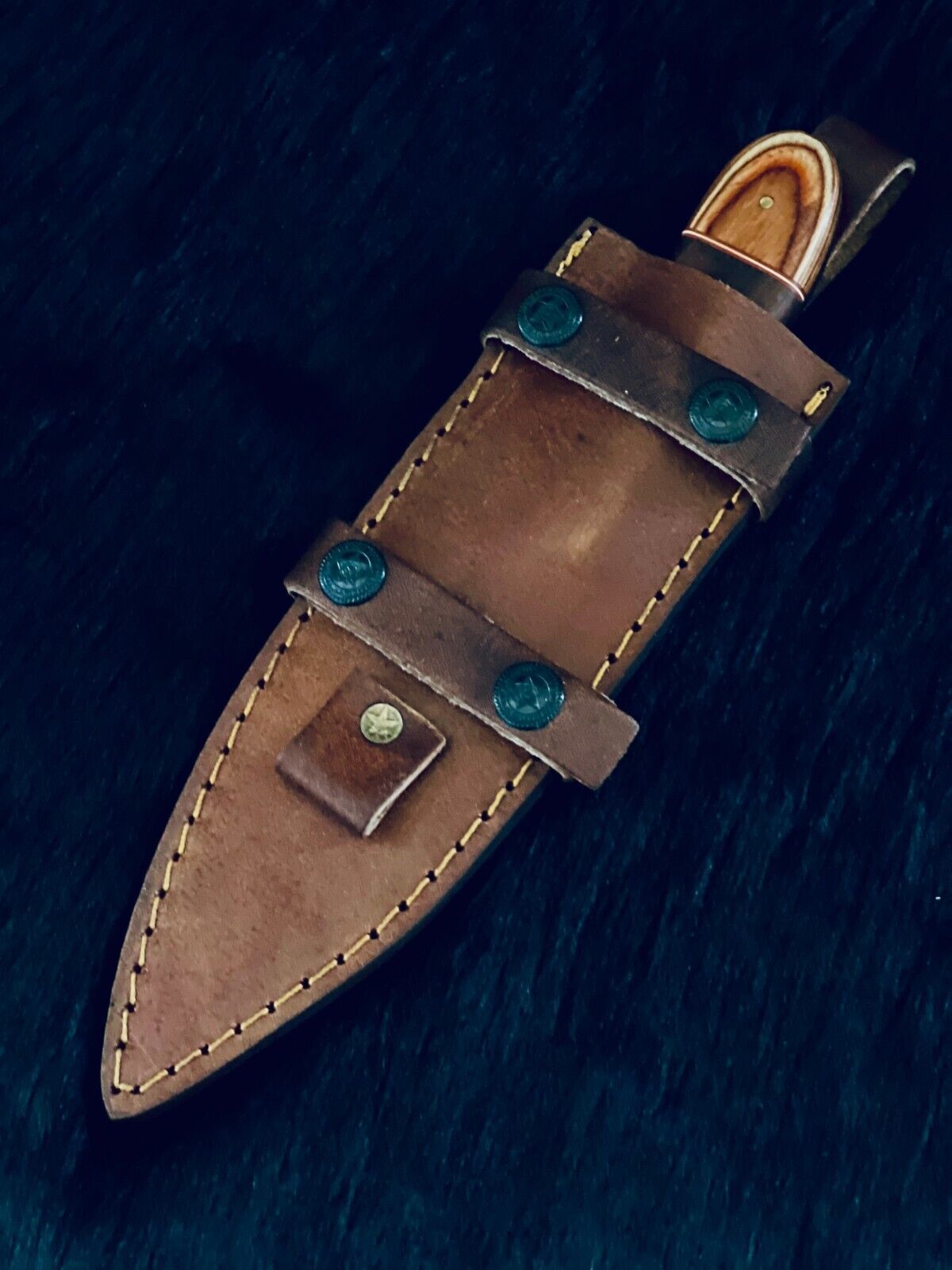 Each knife comes with a handcrafted leather sheath for safe carrying. Whether you're a collector, camper, or outdoor enthusiast, this custom skinner is a reliable and beautiful addition to your gear.